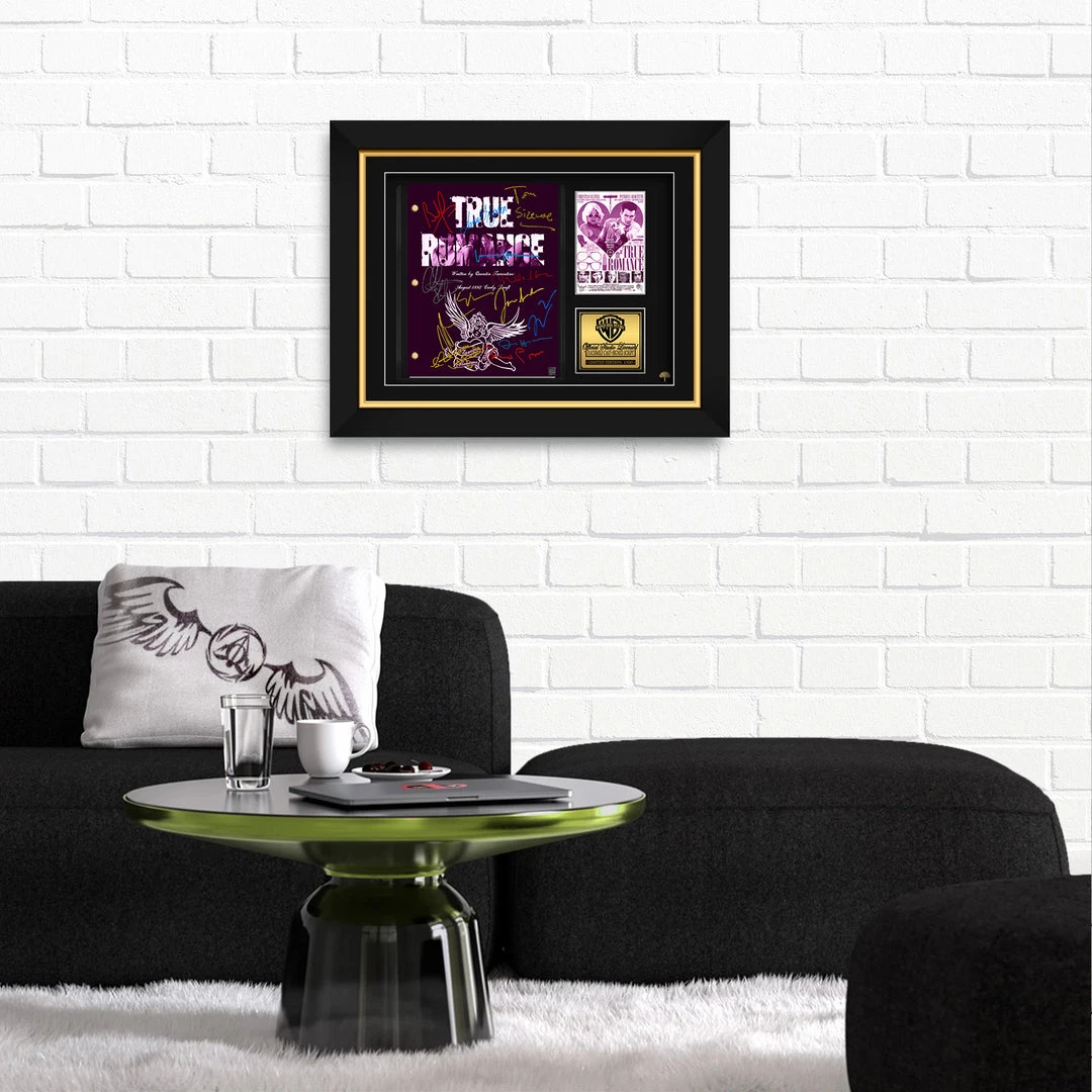 — Collector Grade Proprietary Exclusive VELVET TOUCH water/scratch resistant cover. — Collectible Facsimile of Original Hand-Signed True Romance movie Script Custom Frame.