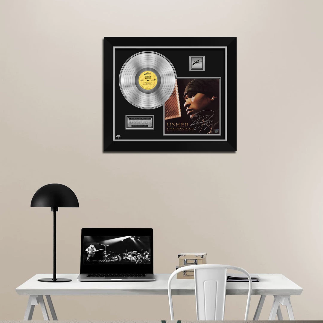 – Collectible Usher Facsimile Hand-Signed Platinum Plated LP Custom Frame