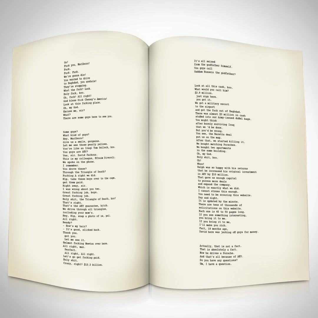 — Collector Grade Proprietary Exclusive VELVET TOUCH water/scratch resistant cover.— Collectible Facsimile of Original Hand-Signed War Dogs movie Transcript Custom Frame.