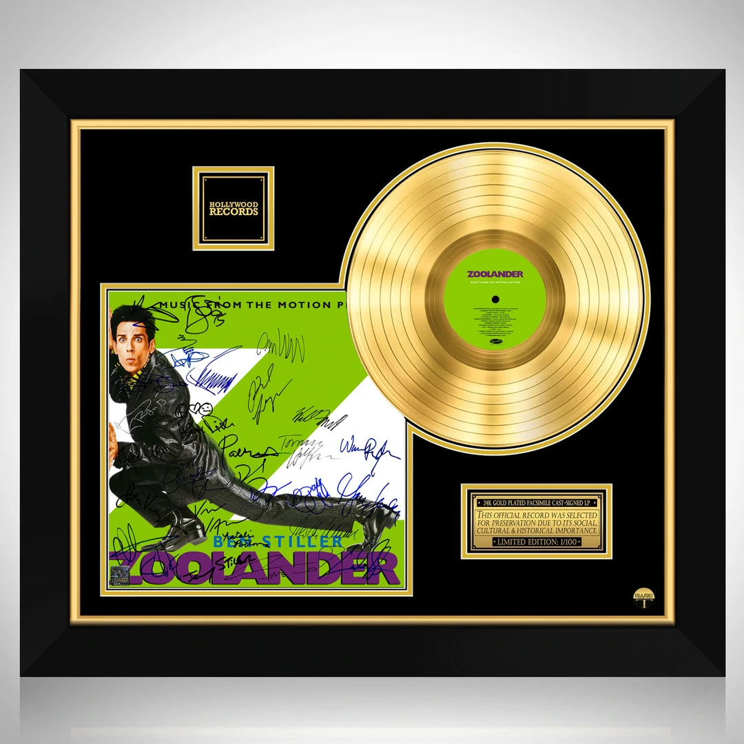 Pay homage to one of the most iconic movie of all time Zoolander , with this gallery-framed, authentic Hollywood Records fully licensed facsimile of the official Hand-Signed 24K Gold LP Record and LP Cover Music from the Motion Picture Originally signed by Ben Stiller, Owen Wilson, Will Ferrell, Milla Jovivich, Christine Taylor,Jerry Stiller, Jon Voight, David Duchovny, Donald Trump, Christian Slater, Cuba Gooding Jr, Tommy Hilfiger, Natalie Portman, Fabio Lanzoni, Lenny Kravitz, Gwen Stefani, Heidi Klum, Paris Hilton, David Bowie, Garry Shandling, Justin Theroux, Andy Dick, Patton Oswalt, Karl Lagerfeld, Winona Ryder & Vince Vaughn , of which is strictly limited to 100 units Worldwide and has been approved and numbered accordingly.