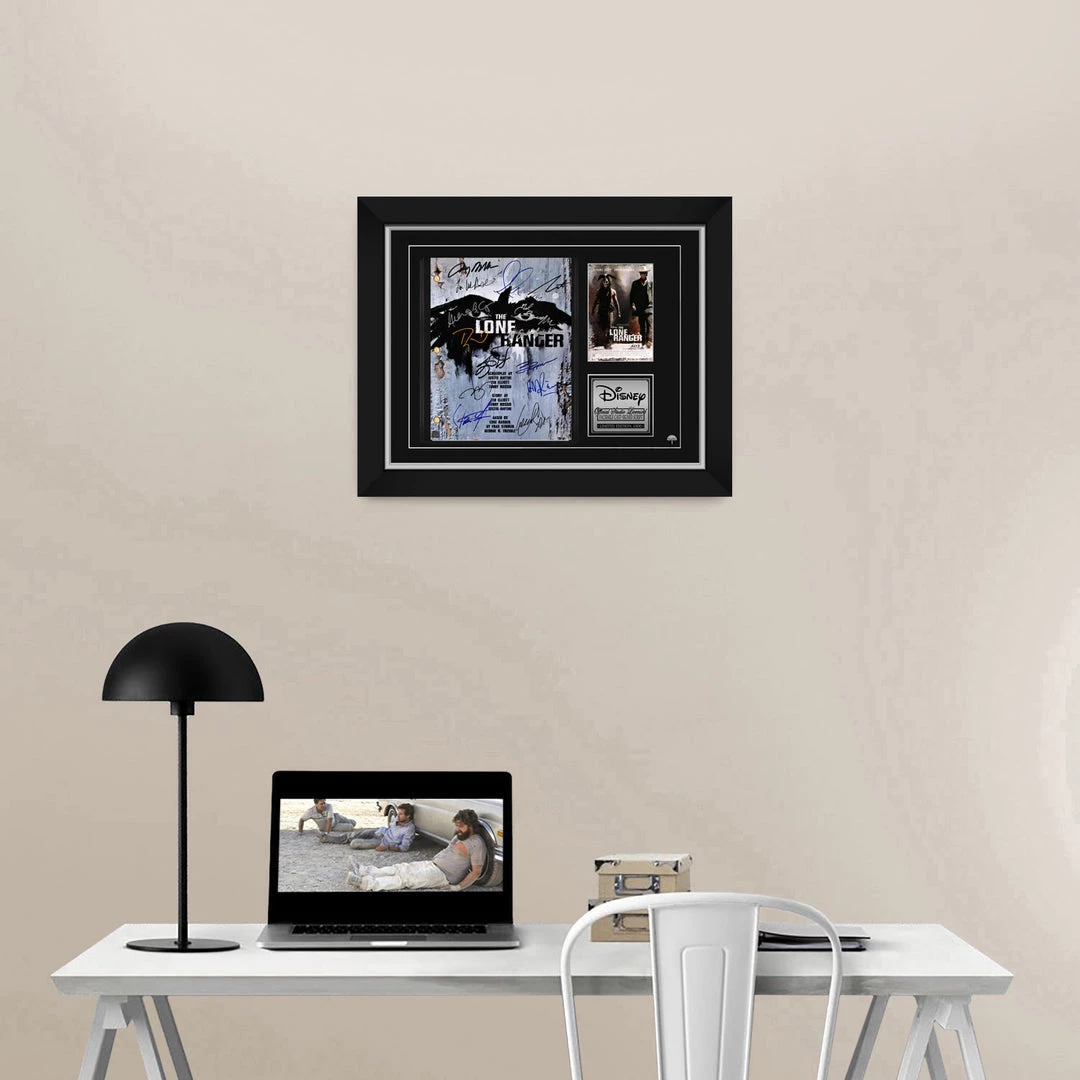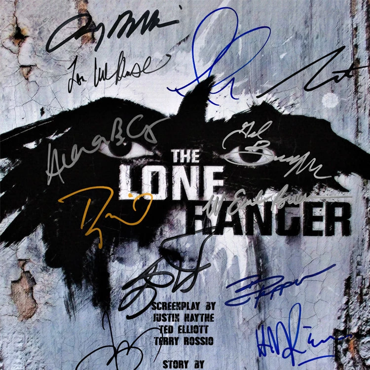 Pay homage to Lone Ranger 2013 , with this Walt Disney Studios fully licensed facsimile of the official signed movie script, originally signed by actors Jerry Bruckheimer, Johnny Depp, Armie Hammer, Tom Wilkinson, William Fichtner, Barry Pepper, James Badge Dale, Helena Bonham Carter, Hans Zimmer, Ruth Wilson, W.Earl Brown, Gil Birmingham, Leon Rippy & Stephen Root , of which is strictly limited to 100 units Worldwide and has been approved and numbered accordingly.