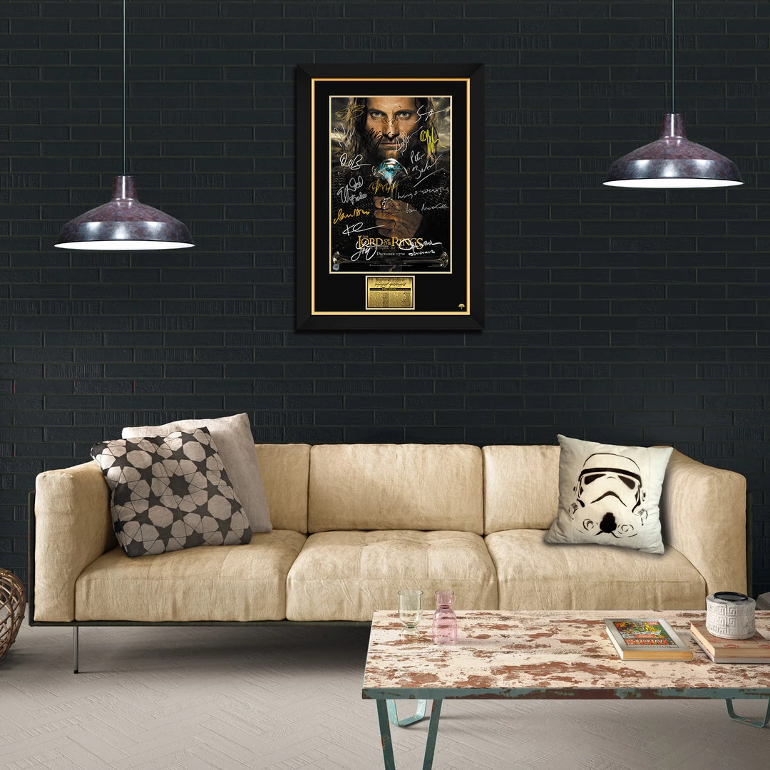 Pay homage to one of the most iconic films of all time, Lord Of The Rings The Return of The King, with this gallery-framed, officially licensed, limited edition facsimile of hand-signed movie mini poster, originally signed by Peter Jackson, Elijah Wood, Ian McKellen, Liv Tyler, Viggo Mortensen, Sean Astin, Cate Blanchett, John Rhys-Davies, Bernard Hill, Billy Boyd, Dominic Monaghan, Orlando Bloom, Hugo Weaving, Miranda Otto, David Wenham, Karl Urban, John Noble, Andy Serkis, Ian Holm & Sean Bean, of which is strictly limited to 100 units Worldwide, and has been approved and numbered accordingly.