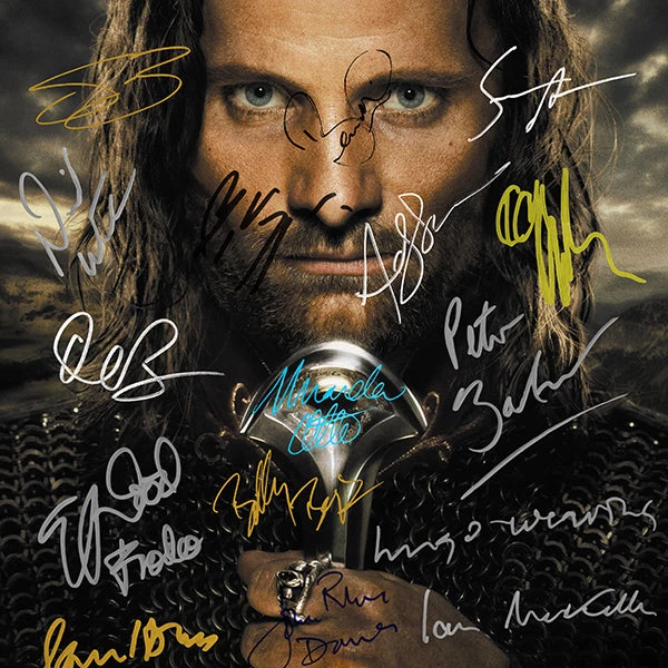 — Originally signed by Peter Jackson, Elijah Wood, Ian McKellen, Liv Tyler, Viggo Mortensen, Sean Astin, Cate Blanchett, John Rhys-Davies, Bernard Hill, Billy Boyd, Dominic Monaghan, Orlando Bloom, Hugo Weaving, Miranda Otto, David Wenham, Karl Urban, John Noble, Andy Serkis, Ian Holm & Sean Bean
