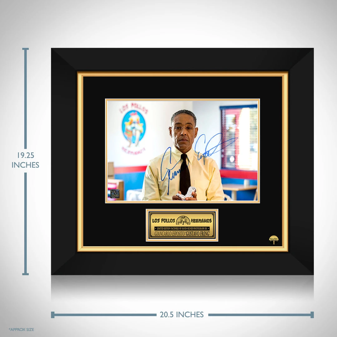Pay homage to Breaking Bad & Better Call Saul with this gallery-framed, officially licensed, limited edition facsimile of hand-signed photo, originally signed by Giancarlo Esposito, of which is strictly limited to 100 units Worldwide, and has been approved and numbered accordingly.