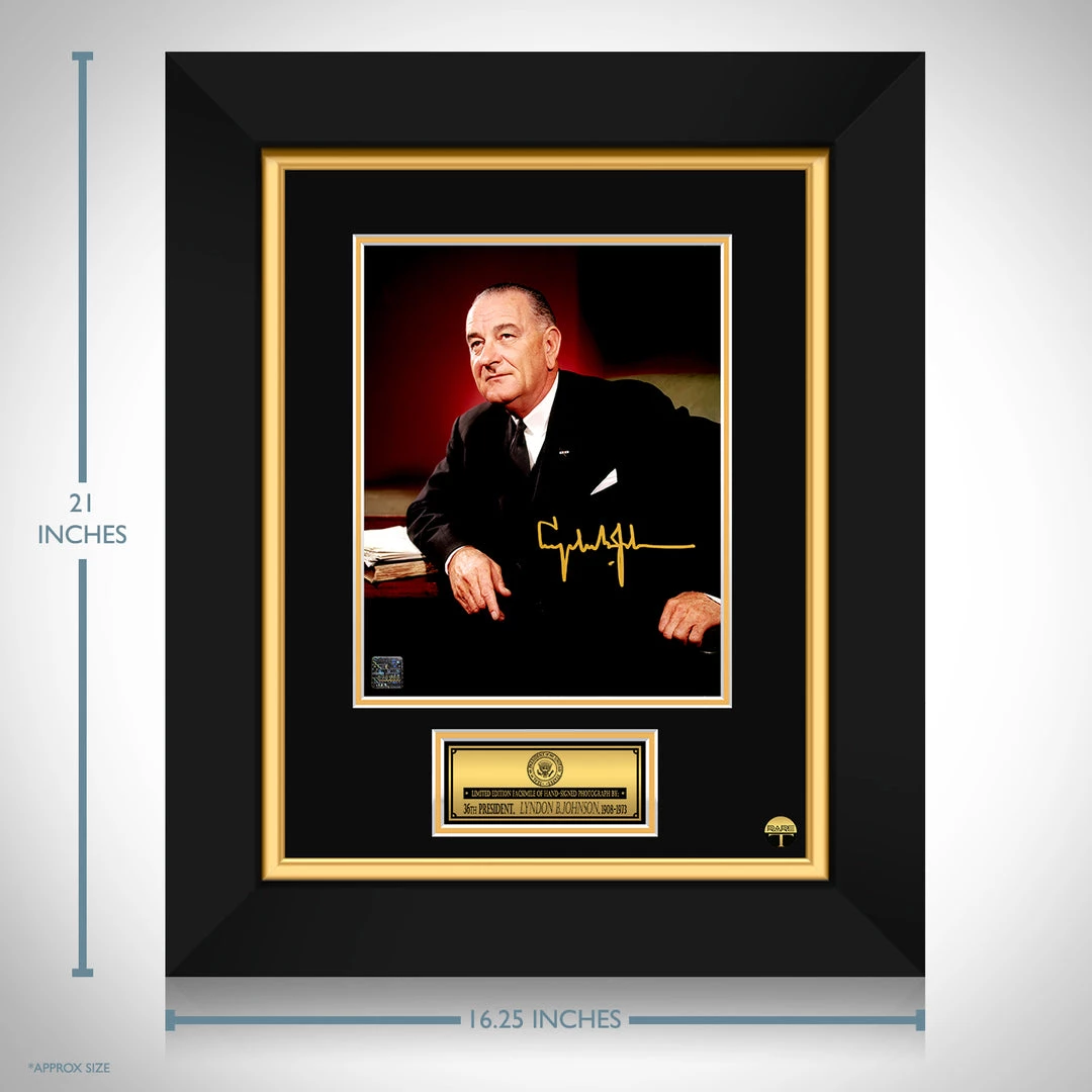 Pay homage to the 36th President of the United States of America with this gallery-framed, officially licensed, limited edition facsimile of hand-signed photo, originally signed by Lyndon B. Johnson, of which is strictly limited to 100 units Worldwide, and has been approved and numbered accordingly.
