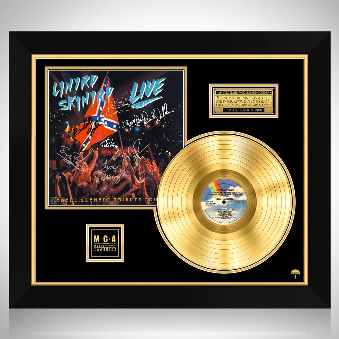 โ Collectible Lynyrd Skynyrd Facsimile Hand-Signed 24K Gold LP Custom Frame