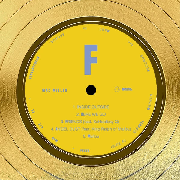 Pay homage to one of the most iconic American rapper of all time Mac Miller , with this gallery-framed, authentic Warner Records fully licensed facsimile of the official Hand-Signed 24K Gold LP Record and LP Cover Faces Originally signed by Mac Miller , of which is strictly limited to 100 units Worldwide and has been approved and numbered accordingly.
