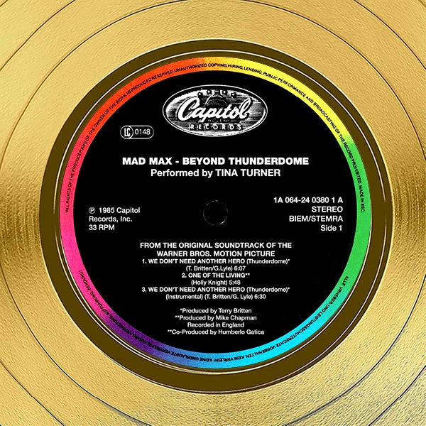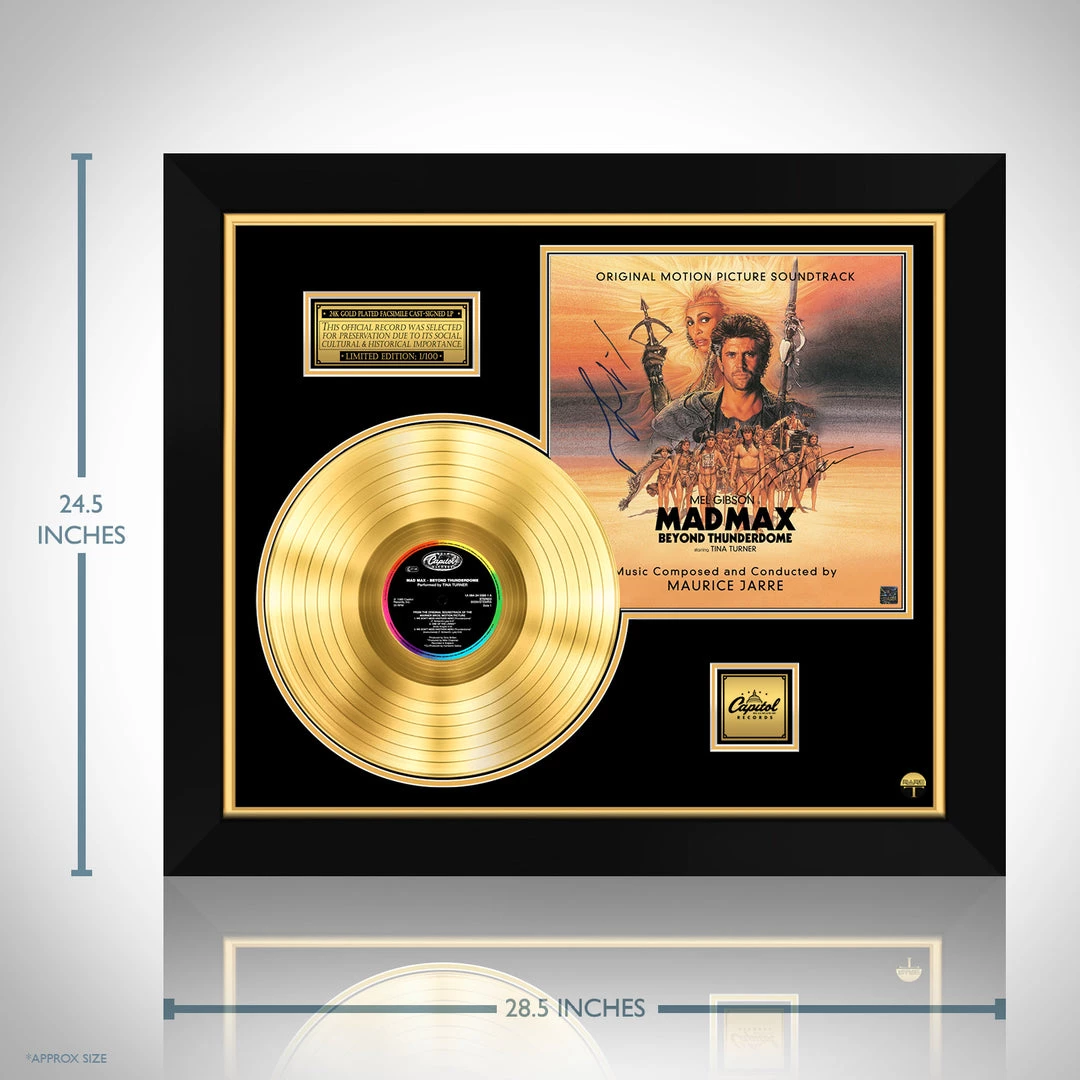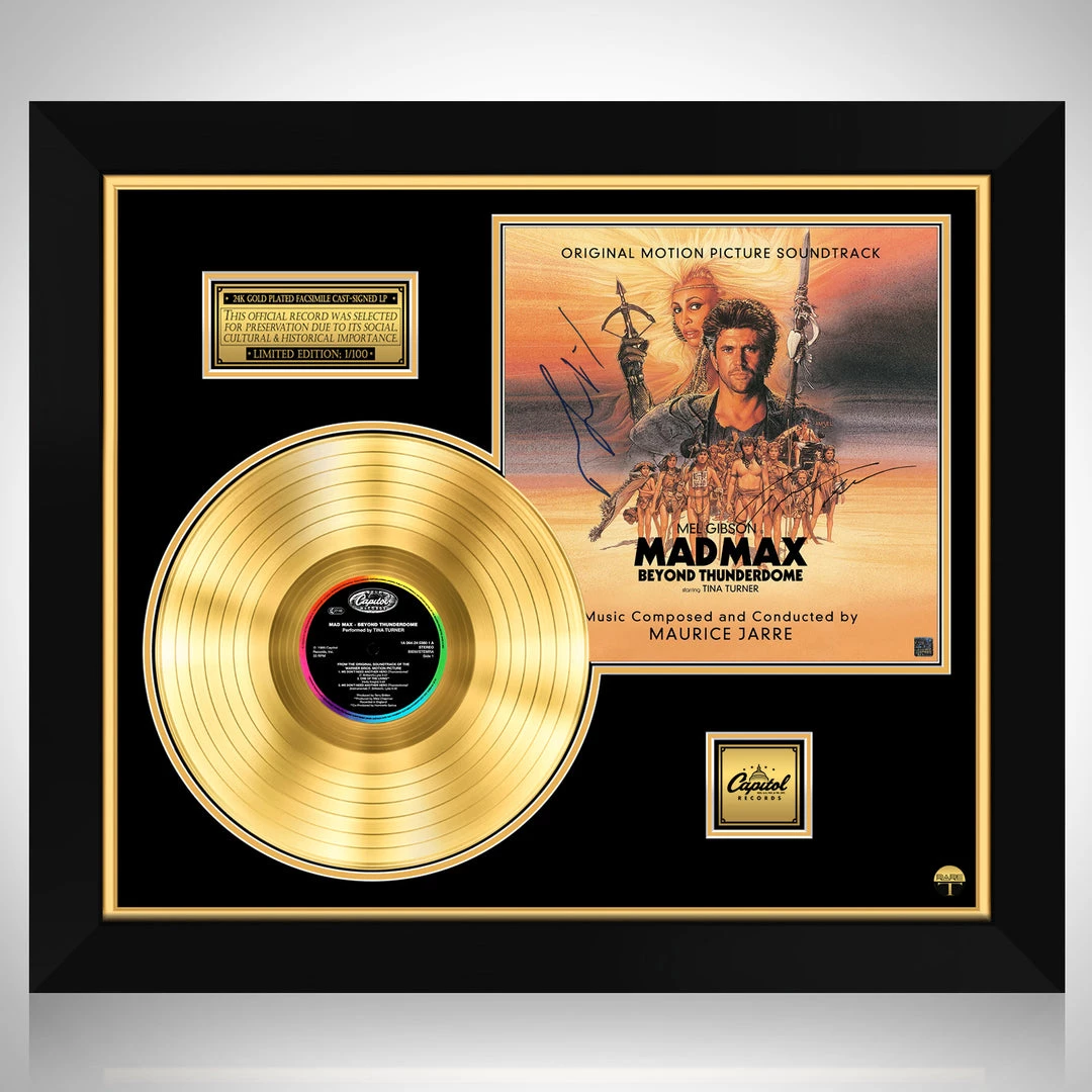 Pay homage to one of the most iconic movie of all time Mad Max Beyond Thunderdome , with this gallery-framed, authentic Capitol Records fully licensed facsimile of the official Hand-Signed 24K Gold LP Record and LP Cover Original Movie Soundtrack Originally signed by Mel Gibson & Tina Turner , of which is strictly limited to 100 units Worldwide and has been approved and numbered accordingly.
