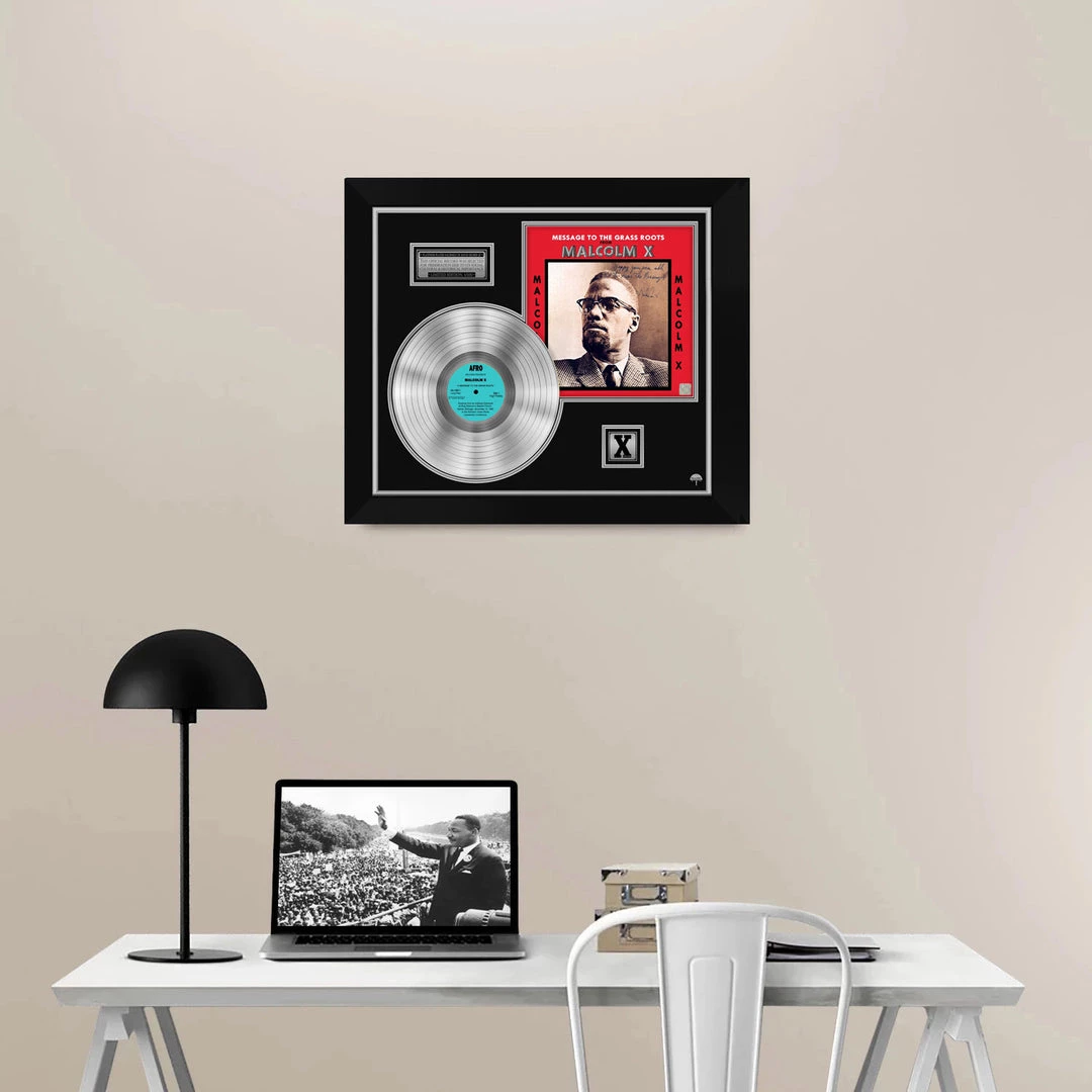 ฦ?? Collectible Facsimile Malcolm X A Message to the Grass Roots Platinum Plated LP Custom Frame