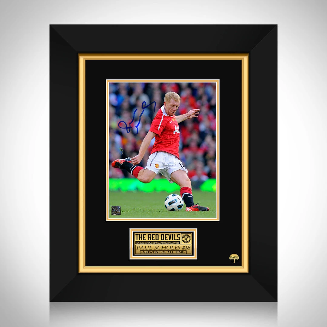Pay homage to the Manchester United with this gallery-framed, officially licensed, limited edition facsimile of hand-signed photo, originally signed by Paul Scholes, of which is strictly limited to 100 units Worldwide, and has been approved and numbered accordingly.