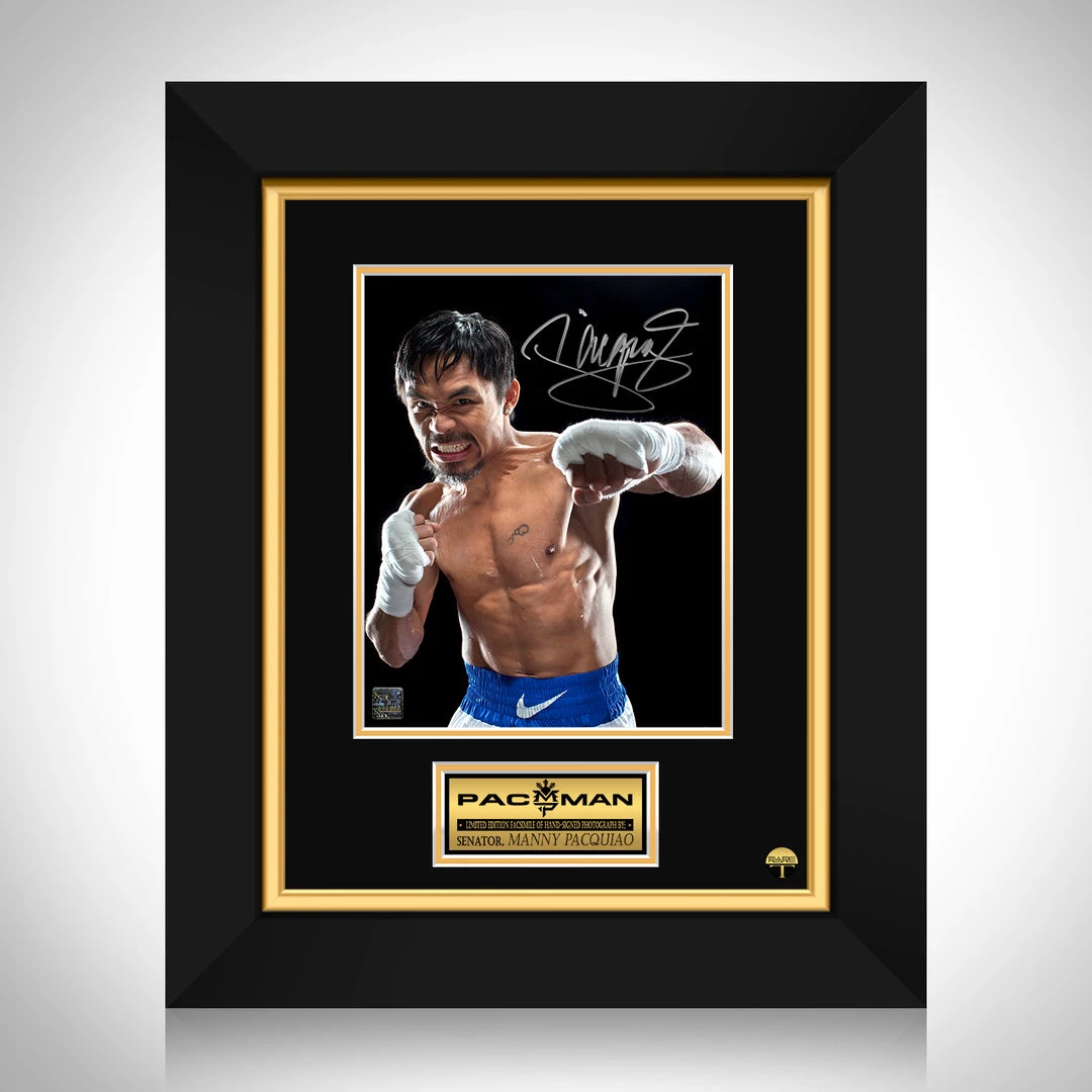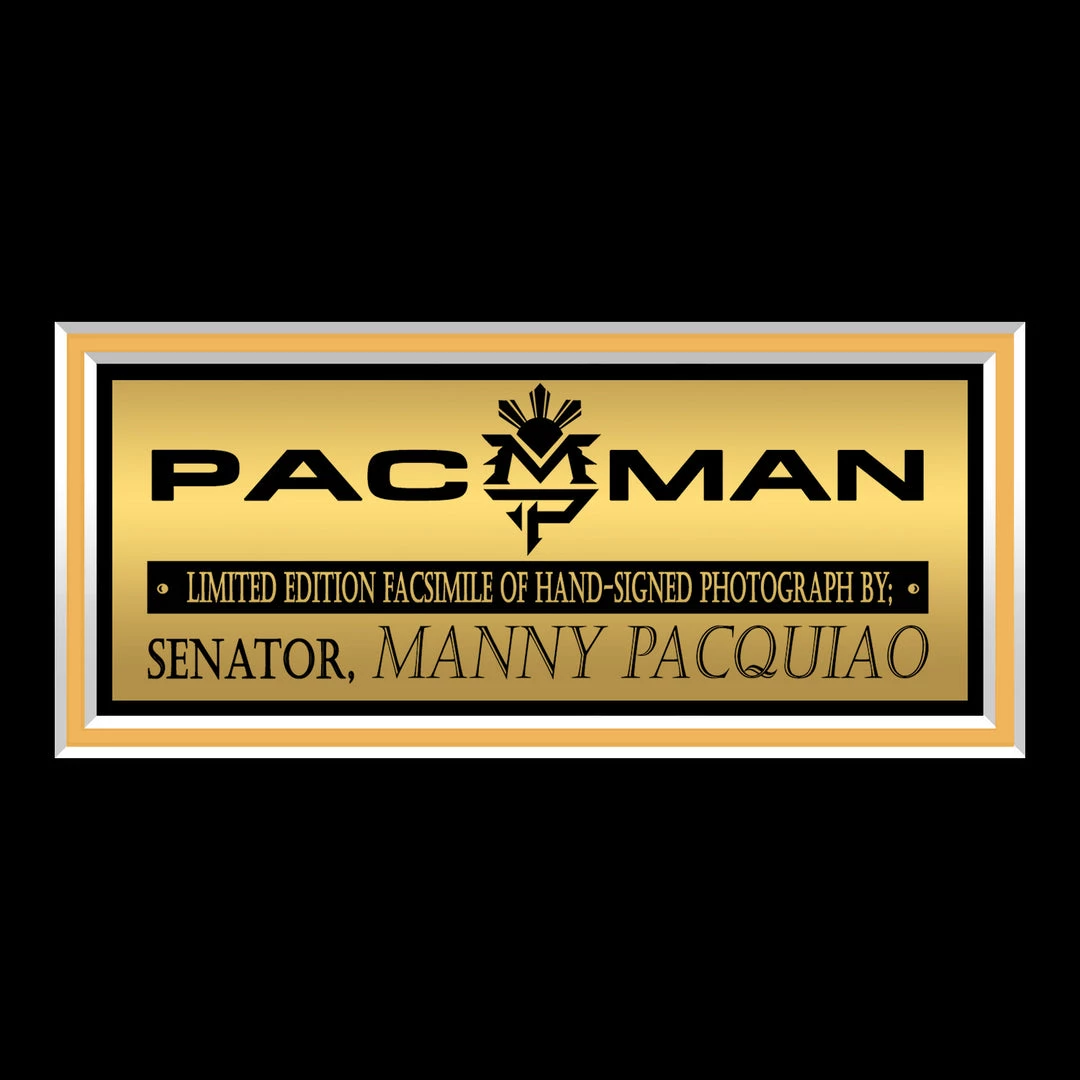 Pay homage to Manny Pacquiao, with this gallery-framed, officially licensed, limited edition facsimile of the Hand-Signed photo, originally signed by Manny Pacquiao, of which is strictly limited to 100 units Worldwide, and has been approved and numbered accordingly.