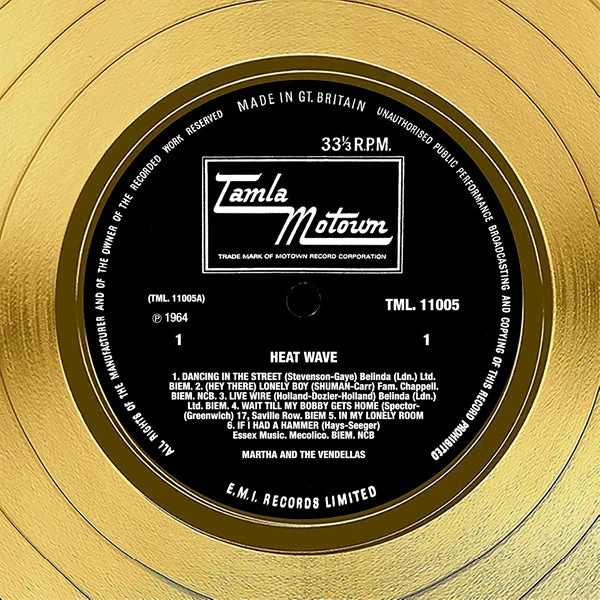 Pay homage to one of the most iconic American vocal girl group of all time Martha Reeves and the Vandellas, with this gallery-framed, authentic Tamla fully licensed facsimile of the official Hand-Signed 24K Gold LP Record and LP Cover Heat Wave Originally signed by Martha Reeves , of which is strictly limited to 100 units Worldwide and has been approved and numbered accordingly.