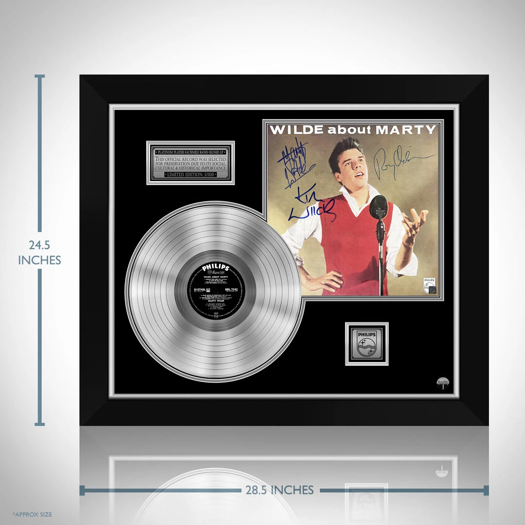 Pay homage to one of the most iconic English singer and songwriter of all time Marty Wilde , with this gallery-framed, authentic Philips Record fully licensed facsimile of the official Hand-Signed Platinum Plated LP Record and LP Cover Wilde about Mary Originally signed by Marty Wilde, Kim Wilde & Roy Orbison , of which is strictly limited to 100 units Worldwide and has been approved and numbered accordingly.