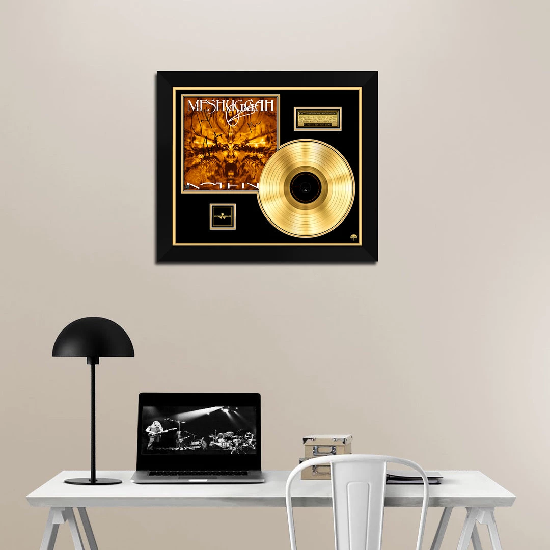 Pay homage to one of the most iconic Swedish extreme metal band of all time Meshuggah , with this gallery-framed, authentic Nuclear Blast fully licensed facsimile of the official Hand-Signed 24K Gold LP Record and LP Cover Nothing Originally signed by Jens Kidman, Fredrik Thordendal, Mรฅrten Hagstrรถm & Tomas Haake , of which is strictly limited to 100 units Worldwide and has been approved and numbered accordingly.