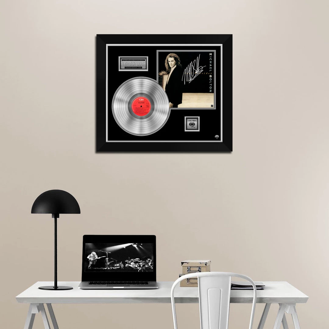 โ Collectible Michael Bolton Facsimile Hand-Signed Platinum Plated LP Custom Frame