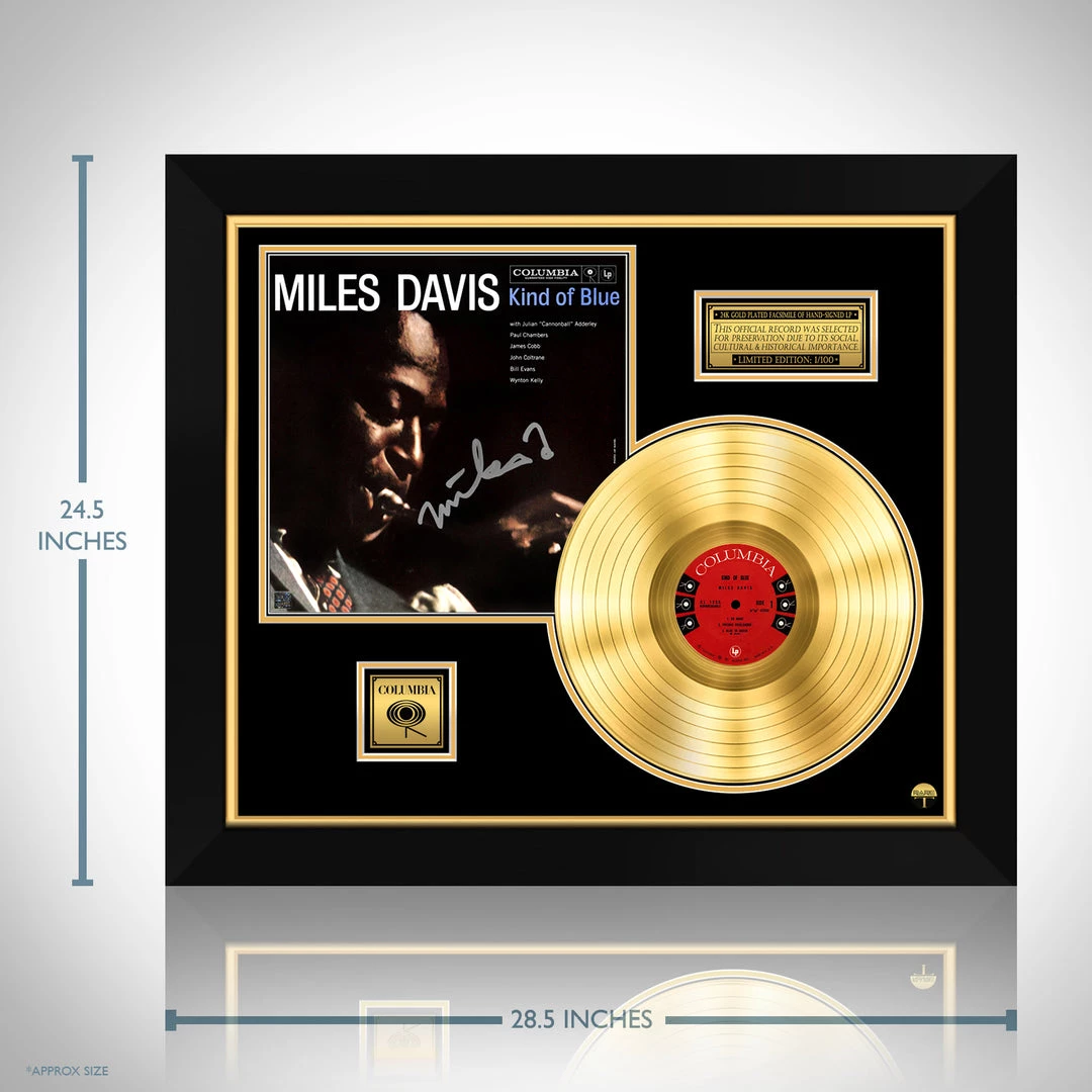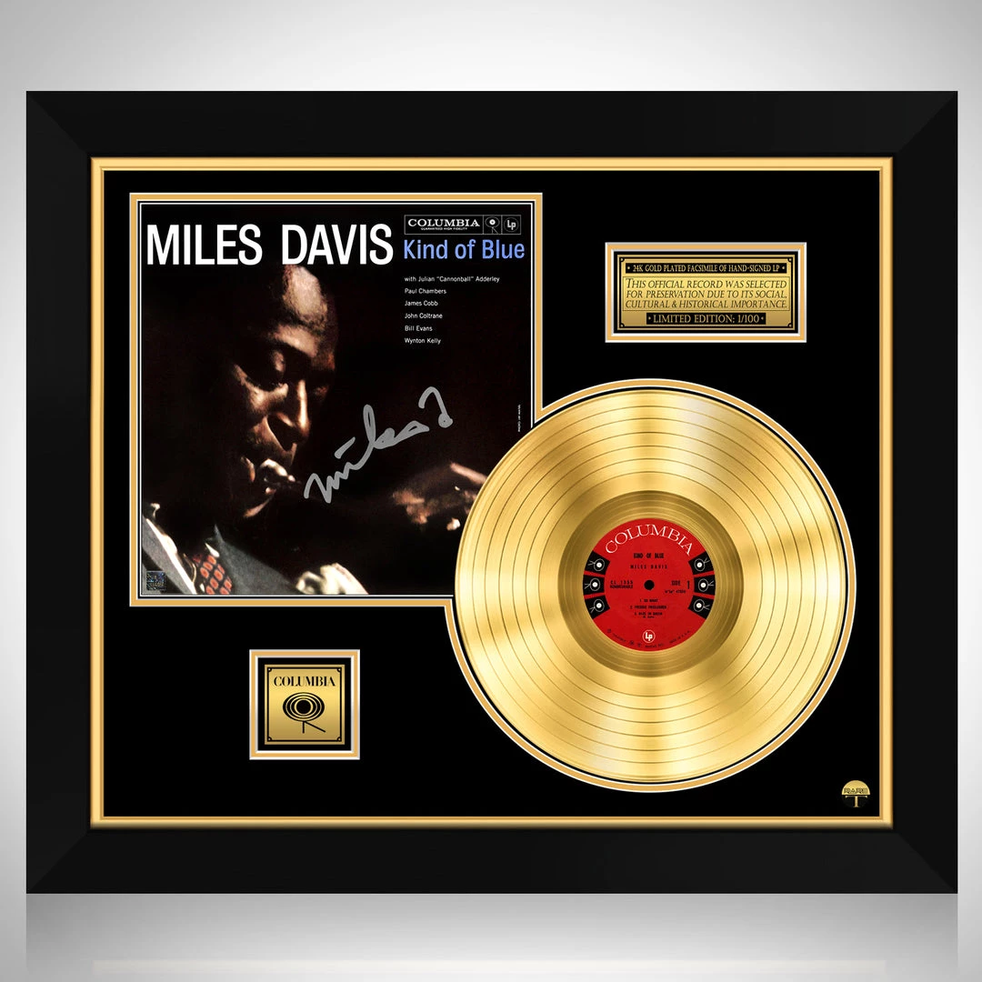 Pay homage to one of the most iconic American trumpeter, bandleader of all time Miles Davis , with this gallery-framed, authentic Columbia Records fully licensed facsimile of the official Hand-Signed 24K Gold LP Record and LP Cover Kind of Blue Originally signed by Miles Davis , of which is strictly limited to 100 units Worldwide and has been approved and numbered accordingly.