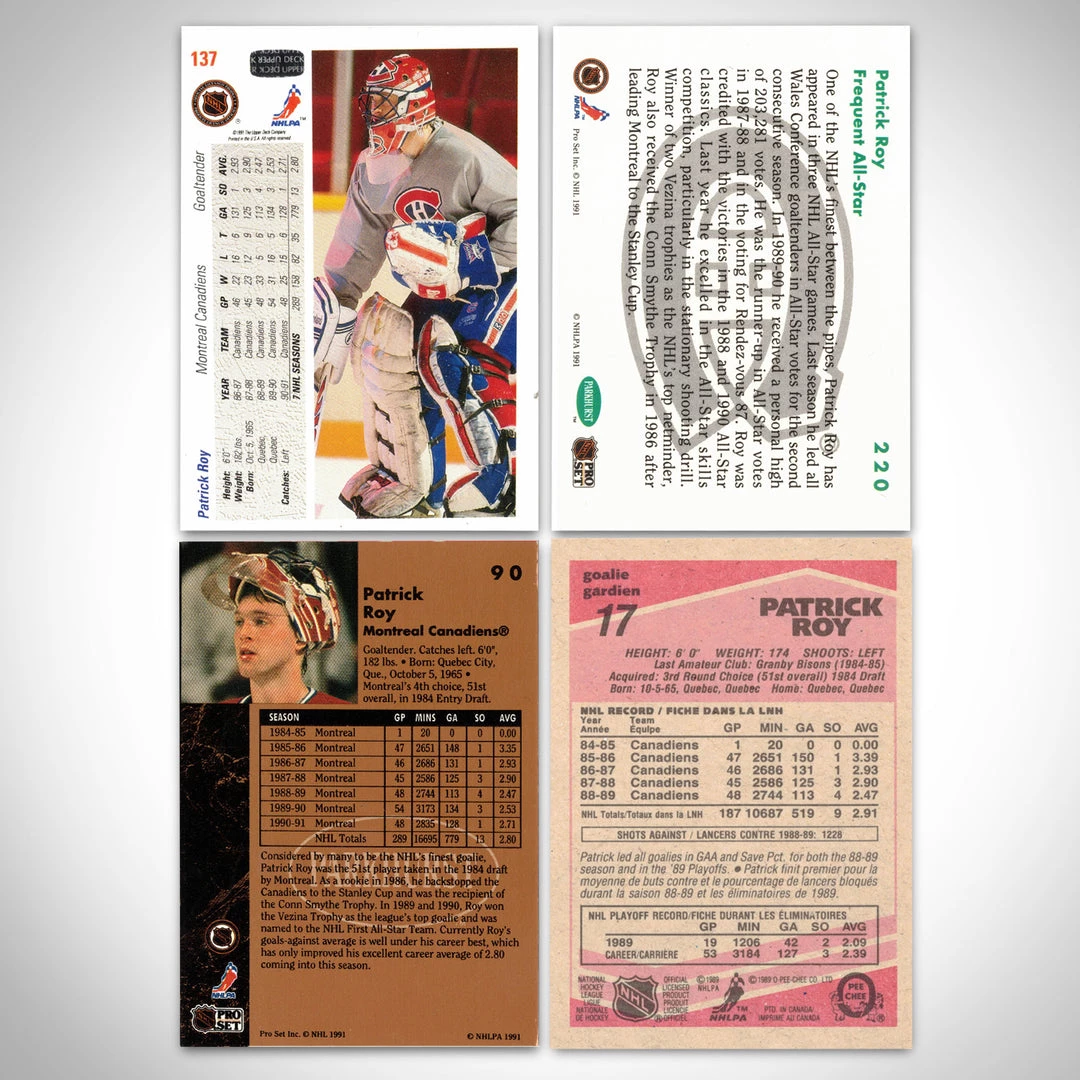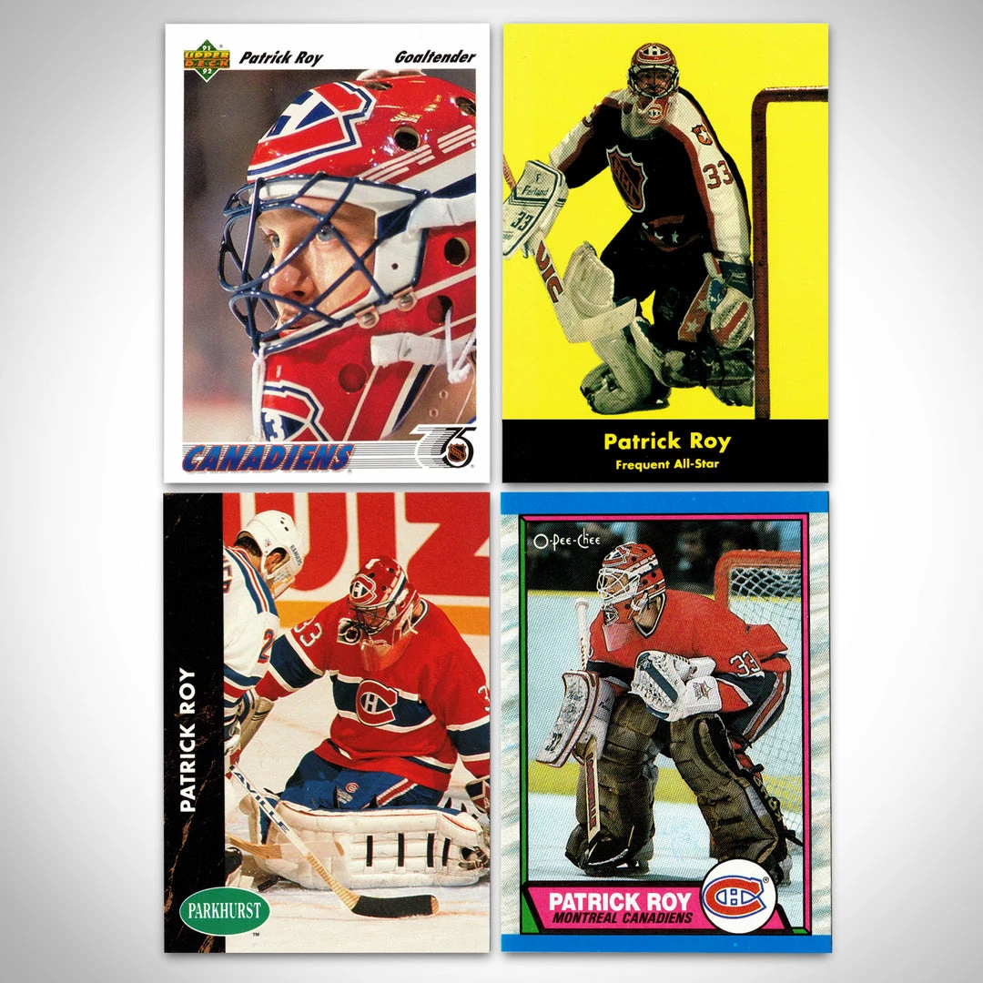 Pay homage to one of the greatest NHL players in history and one of the greatest goaltenders of all time, #33 Patrick Roy with this set of 4 mixed vintage hockey cards.