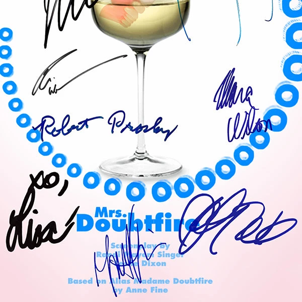 Pay homage to Mrs. Doubtfire , with this 20th Century Fox fully licensed facsimile of the official signed movie Transcript , originally signed by actors Robin Williams, Sally Field, Pierce Brosnan, Harvey Fierstein, Lisa Jakub, Matthew Lawrence, Mara Wilson, Robert Prosky & Martin Mull , of which is strictly limited to 100 units Worldwide and has been approved and numbered accordingly.