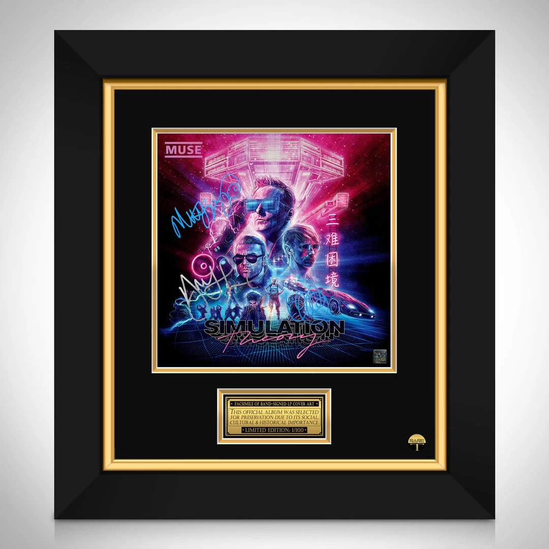 Pay homage to one of the most iconic, controversial and influential Alternative Rock Bands of all time, Muse, with this gallery-framed, officially licensed, limited edition facsimile of hand-signed Simulation Theory, LP Cover originally signed by legendary band members, Lead singer, Guitarist, Pianist & Song Writer Matt Bellamy, Bassist & Vocalist Chris Wolstenholme and co-producer, Drummer & Percussionist Dominic Howard, of which is strictly limited to 100 units Worldwide, and has been approved and numbered accordingly.