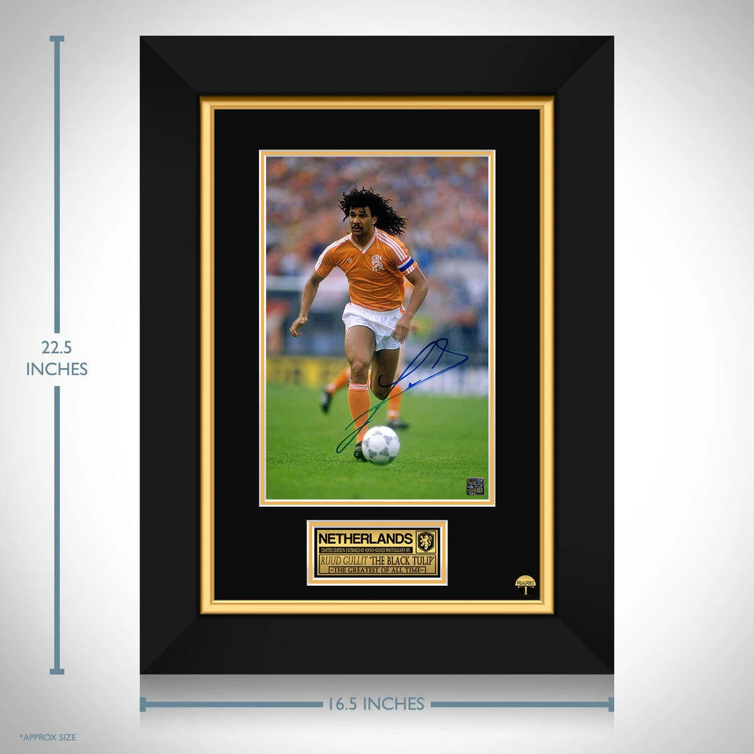 Pay homage to Ruud Gullit with this gallery-framed, officially licensed, limited edition facsimile of hand-signed photo, originally signed by Ruud Gullit of which is strictly limited to 100 units Worldwide, and has been approved and numbered accordingly.