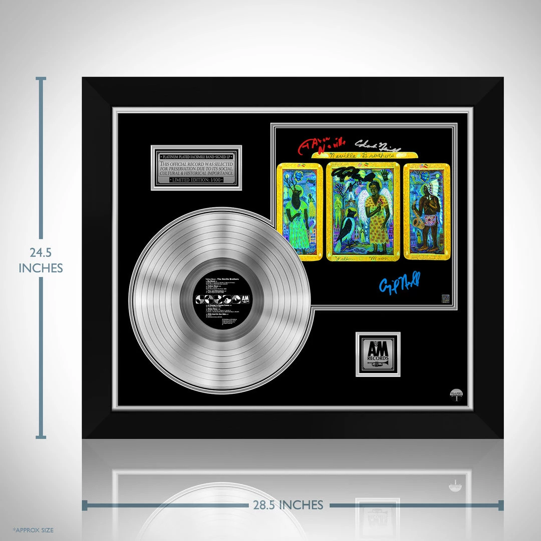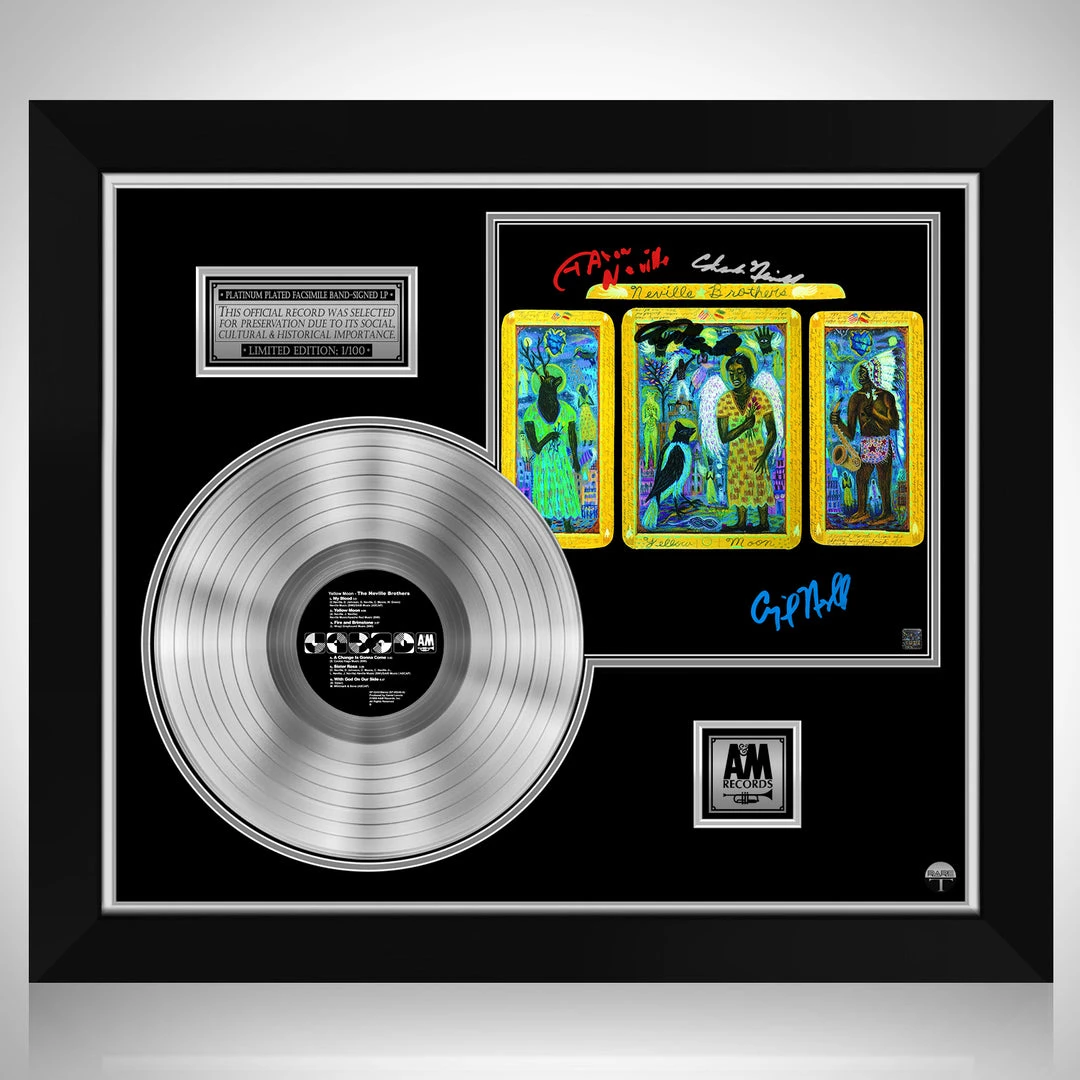 โ Collectible Neville Brothers Facsimile Hand-Signed Platinum Plated LP Custom Frame