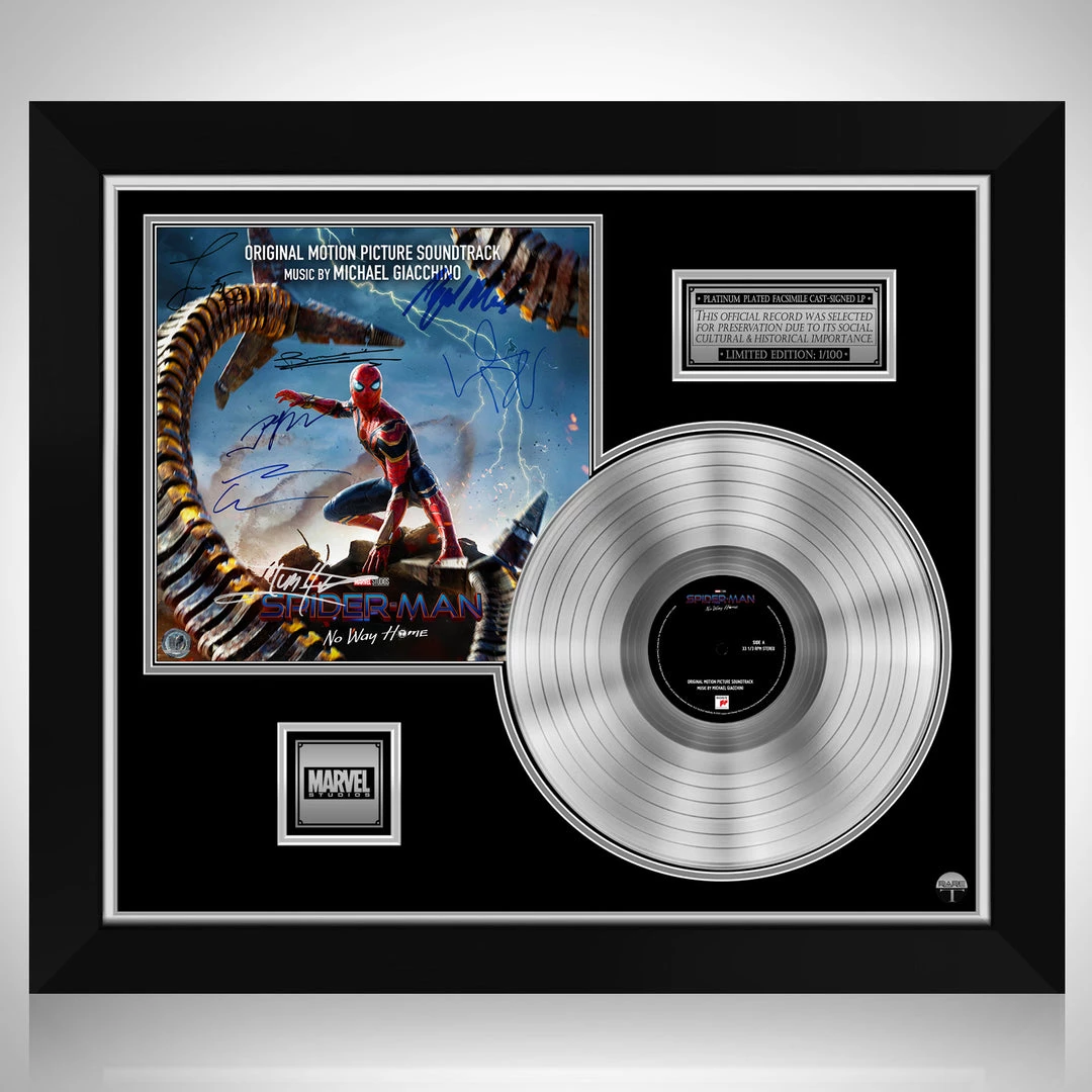 — Collectible Spider Man No Way Home Facsimile Hand-Signed Platinum Plated LP Custom Frame