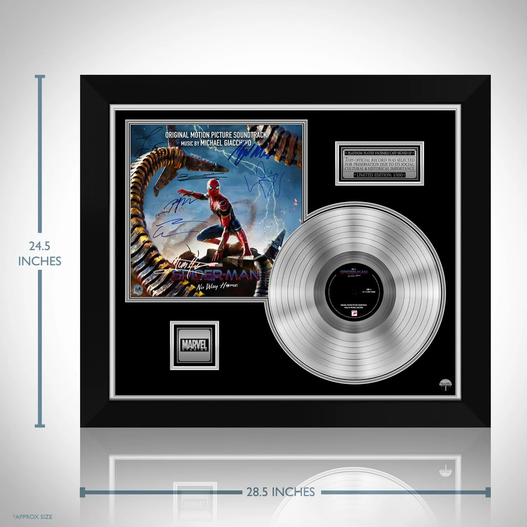 Pay homage to one of the most iconic movie of all time Spider Man No Way Home , with this gallery-framed, authentic Sony Classical fully licensed facsimile of the official Hand-Signed Platinum Plated LP Record and LP Cover Original Motion Picture Soundtrack Originally signed by Tom Holland, Benedict Cumberbatch, Jon Favreau, Jamie Foxx, Willem Dafoe, Alfred Molina, Andrew Garfield & Tobey Maguire , of which is strictly limited to 100 units Worldwide and has been approved and numbered accordingly.
