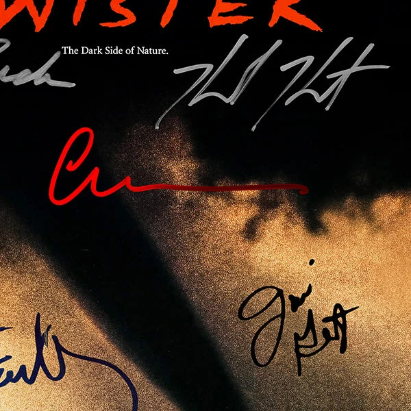 Pay homage to one of the most iconic movies of all time, Twister , with this gallery-framed, officially licensed, limited edition facsimile of hand-signed movie mini poster, originally signed by Michael Crichton, Helen Hunt, Bill Paxton, Jami Gertz, Cary Elwes, Philip Seymour Hoffman, Steven Spielberg, Lois Smith & Alan Ruck, of which is strictly limited to 100 units Worldwide, and has been approved and numbered accordingly.