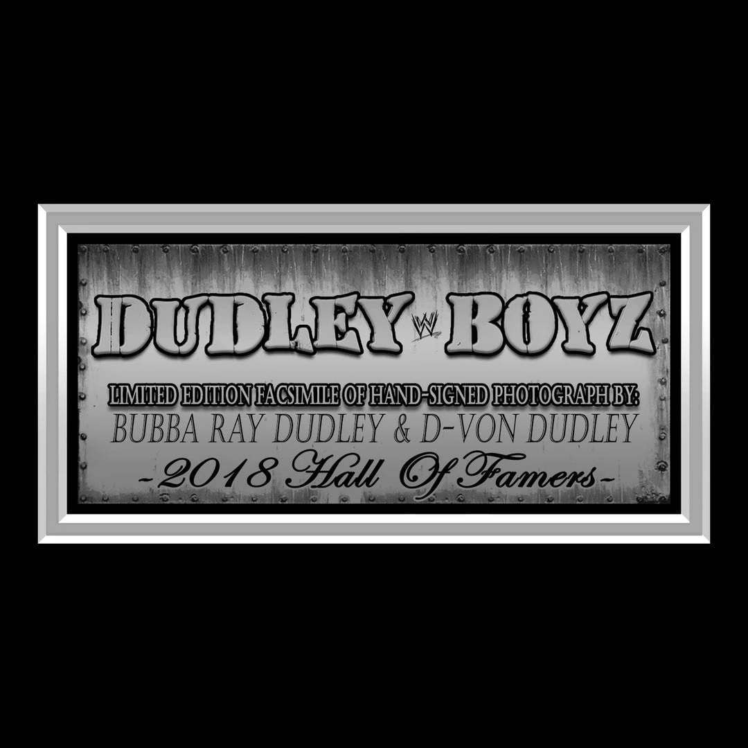 Pay homage to the Dudley Boyz with this gallery-framed, officially licensed, limited edition facsimile of hand-signed photo, originally signed by Bubba Ray Dudley & D-Von Dudley, of which is strictly limited to 100 units Worldwide, and has been approved and numbered accordingly.