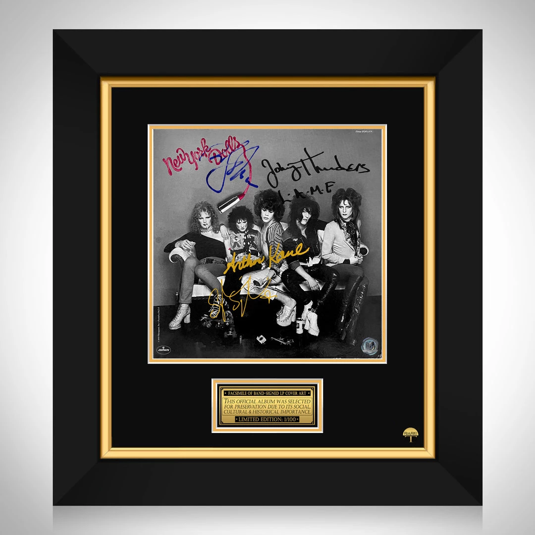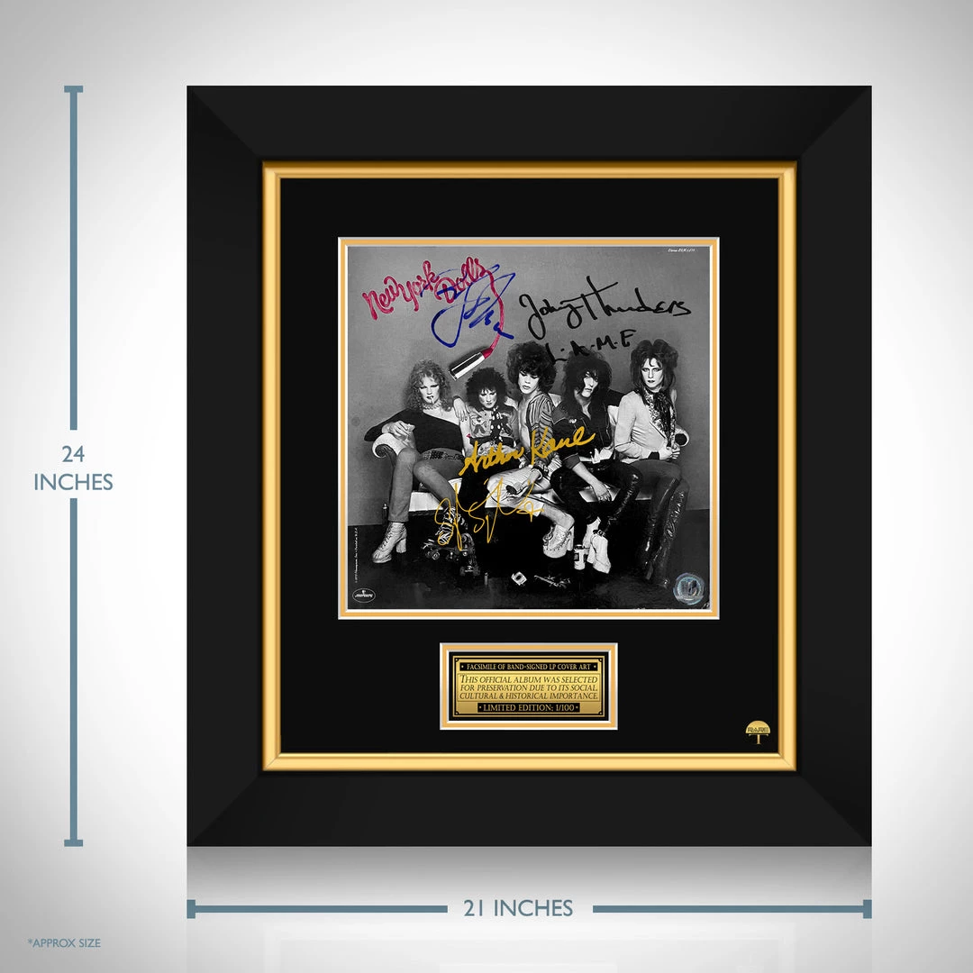 Pay homage to one of the most iconic American hard rock band of all time, New York Dolls , with this gallery-framed, officially licensed, limited edition facsimile of the Hand-Signed 1973 LP Cover originally signed by Johnny Thunders, Arthur Killer Kane, David Johansen & Sylvain Sylvain , of which is strictly limited to 100 units Worldwide, and has been approved and numbered accordingly.