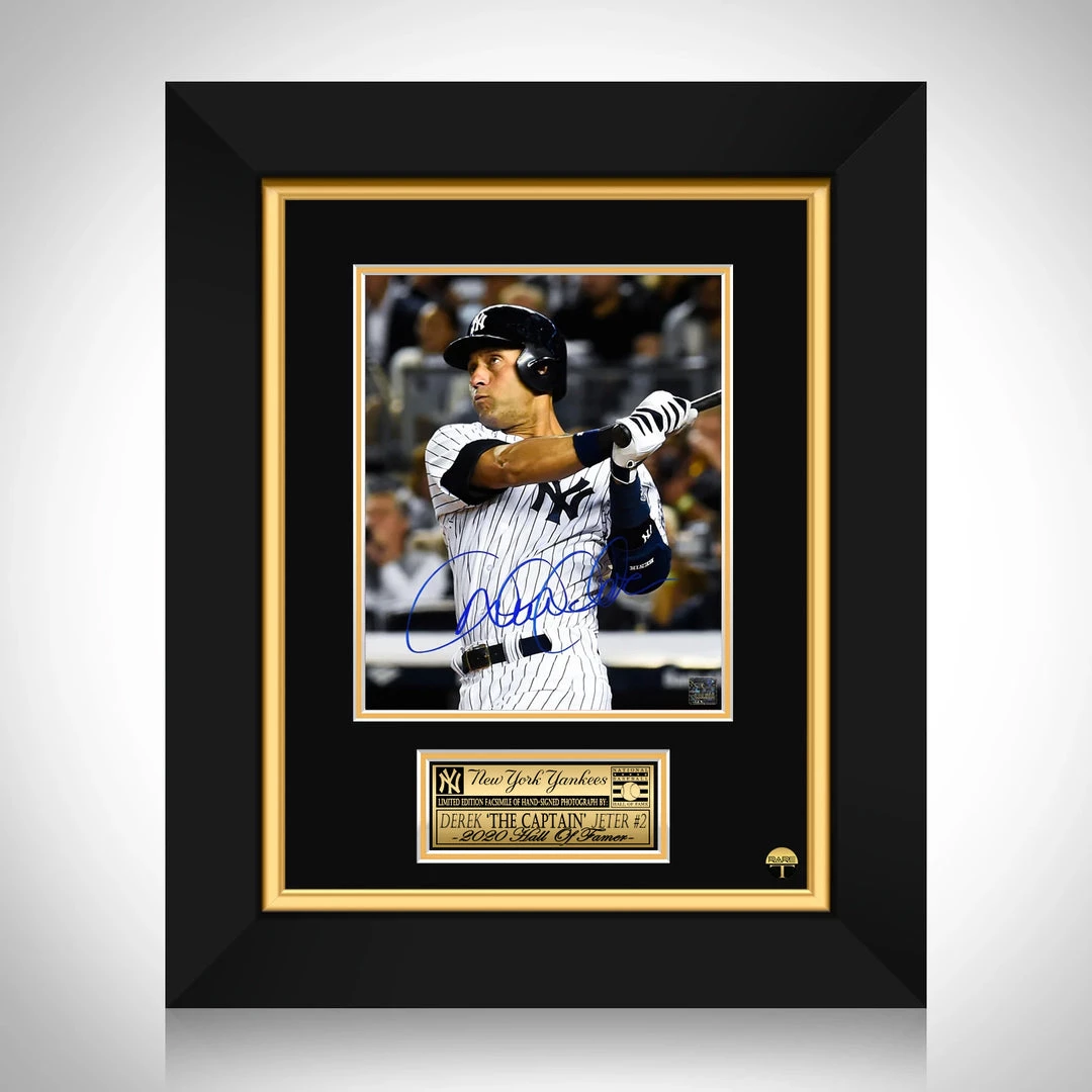 Pay homage to Derek Jeter with this gallery-framed, officially licensed, limited edition facsimile of hand-signed promo photo, originally signed by Derek Jeter , of which is strictly limited to 100 units Worldwide, and has been approved and numbered accordingly.