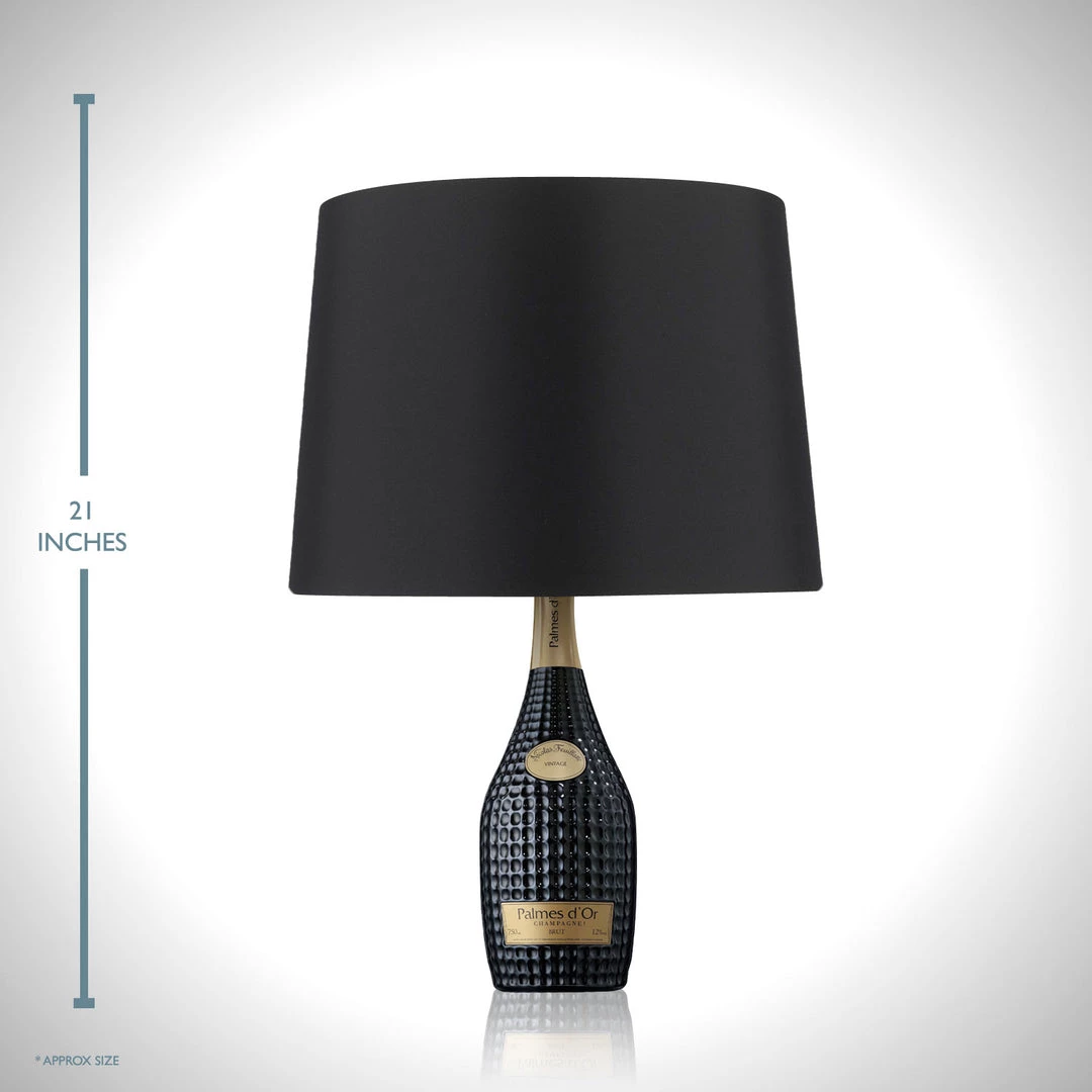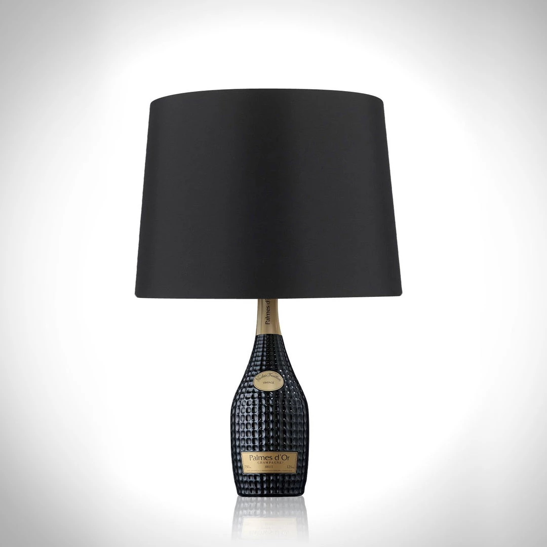 Folk Art, completely handcrafted ‘NICOLAS FEUILLATTE VINTAGE 2002 PALME D’OR CHAMPAGNE’ 750 ml Custom Bottle Lamp, filled with sand reproducing Champagne color, with matching lampshade. An original and unique addition to your classy, modern, vintage or rustic style interior.