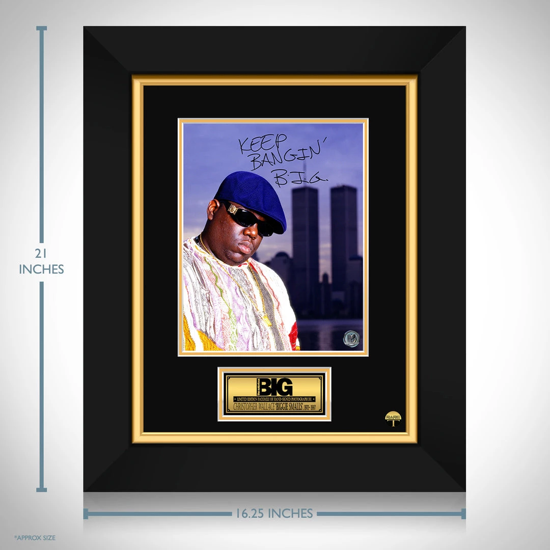 Pay homage to Notorious BIG ‘Biggie Smalls’ with this gallery-framed, officially licensed, limited edition facsimile of hand-signed photo, originally signed by Christopher Wallace, of which is strictly limited to 100 units Worldwide, and has been approved and numbered accordingly.
