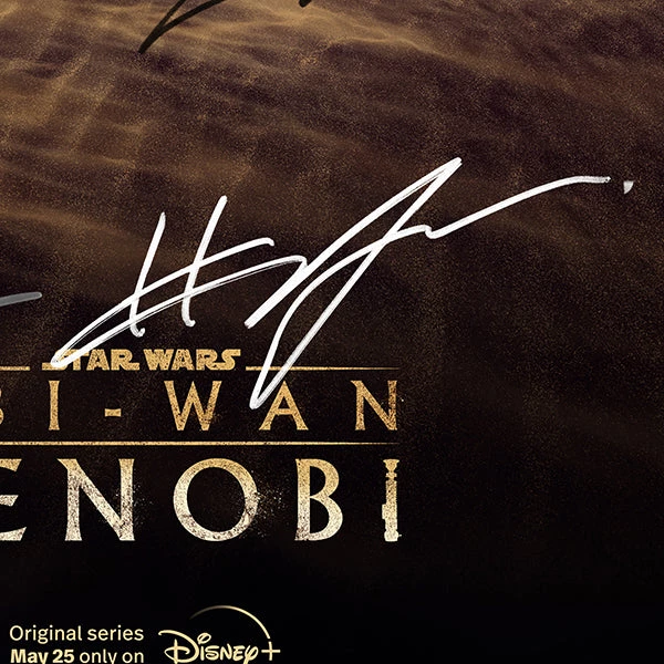 Pay homage to Obi-Wan Kenobi, with this gallery-framed, officially licensed, limited edition facsimile of the Hand-Signed photo, originally signed by George Lucas, Ewan McGregor, Hatden Christensen, Joel Edgerton and Rupert Friend, of which is strictly limited to 100 units Worldwide, and has been approved and numbered accordingly.