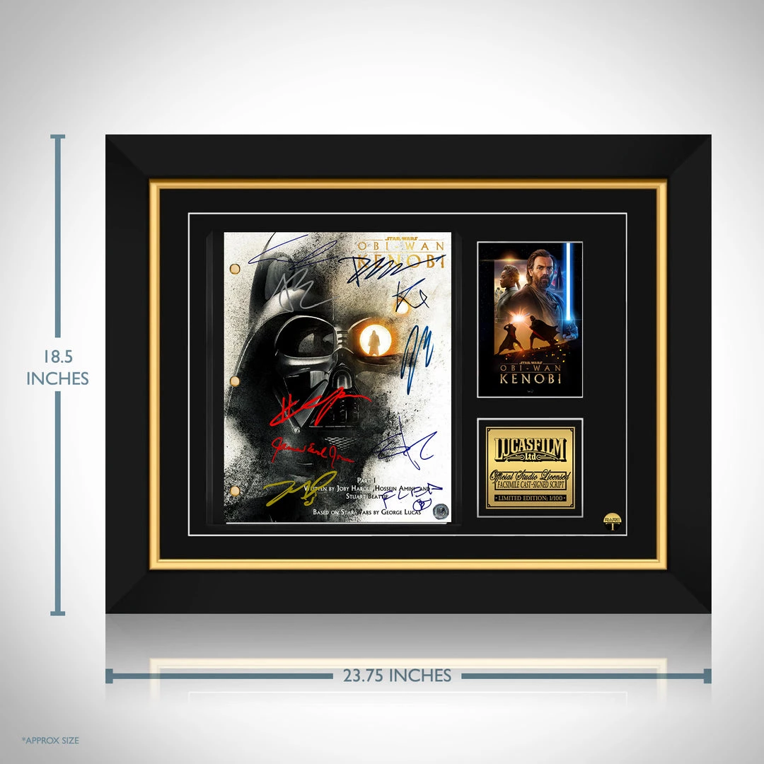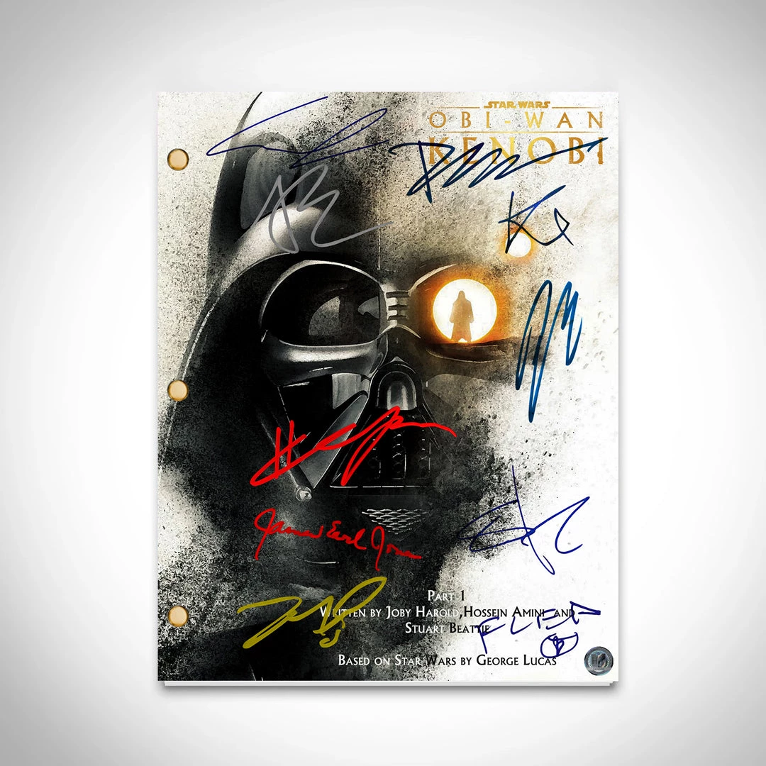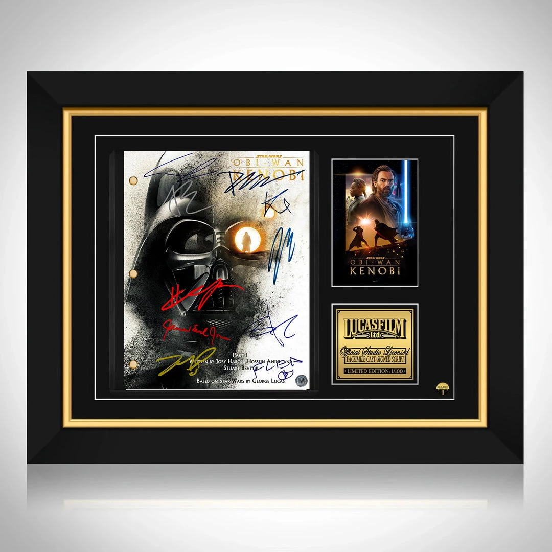 Pay homage to Obi-Wan Kenobi , with this Lucasfilm fully licensed facsimile of the official signed movie transcript, originally signed by actors George Lucas, Deborah Chow, Ewan McGregor, Vivien Lyra Blair, Moses Ingram, Hayden Christensen, James Earl Jones, Jimmy Smits, Flea, Sung Kang, Rupert Friend & Joel Edgerton , of which is strictly limited to 100 units Worldwide and has been approved and numbered accordingly.