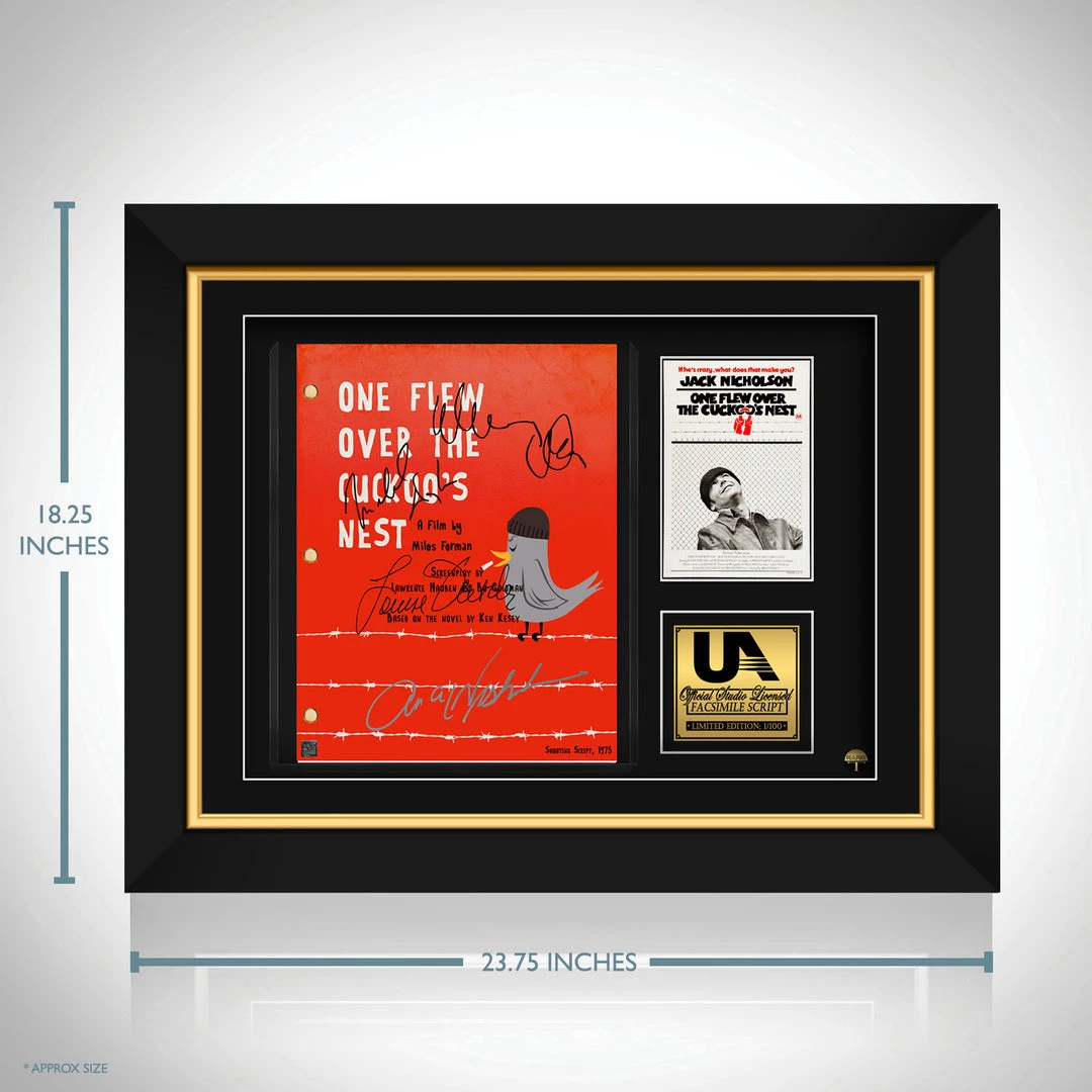Pay homage to One Flew Over The Cuckoos Nest , with this United Artists fully licensed facsimile of the official signed movie script, originally signed by actorsMichael Douglas, Jack Nicholson, Will Sampson, Danny DeVito & Christopher Lloyd , of which is strictly limited to 100 units Worldwide and has been approved and numbered accordingly.