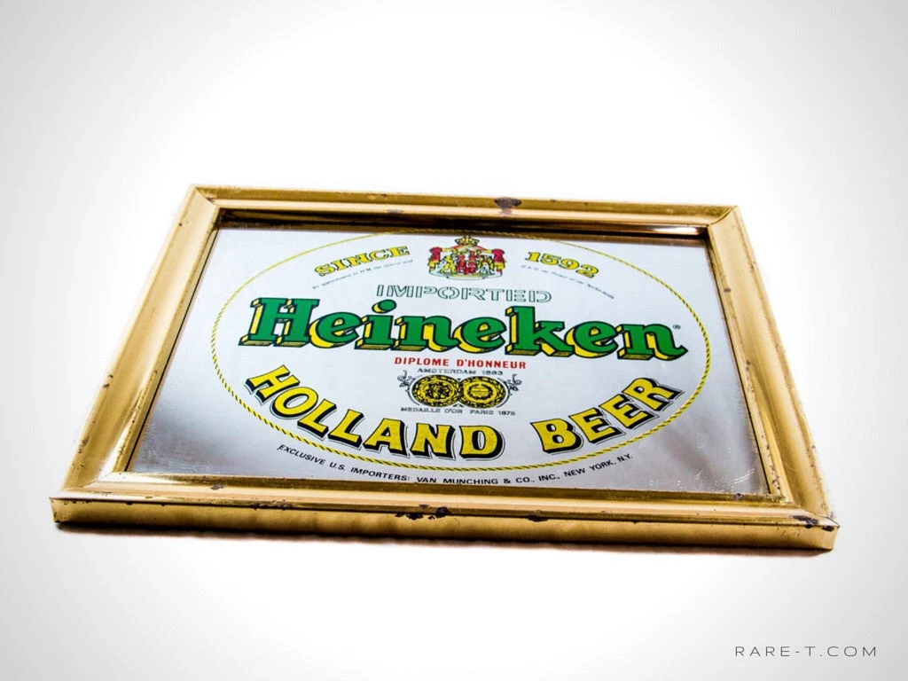 This vintage 16.75 X 13.75 inch Heineken Bar/Pub/Tavern advertisement MIRROR, was REVERSE PAINTED!