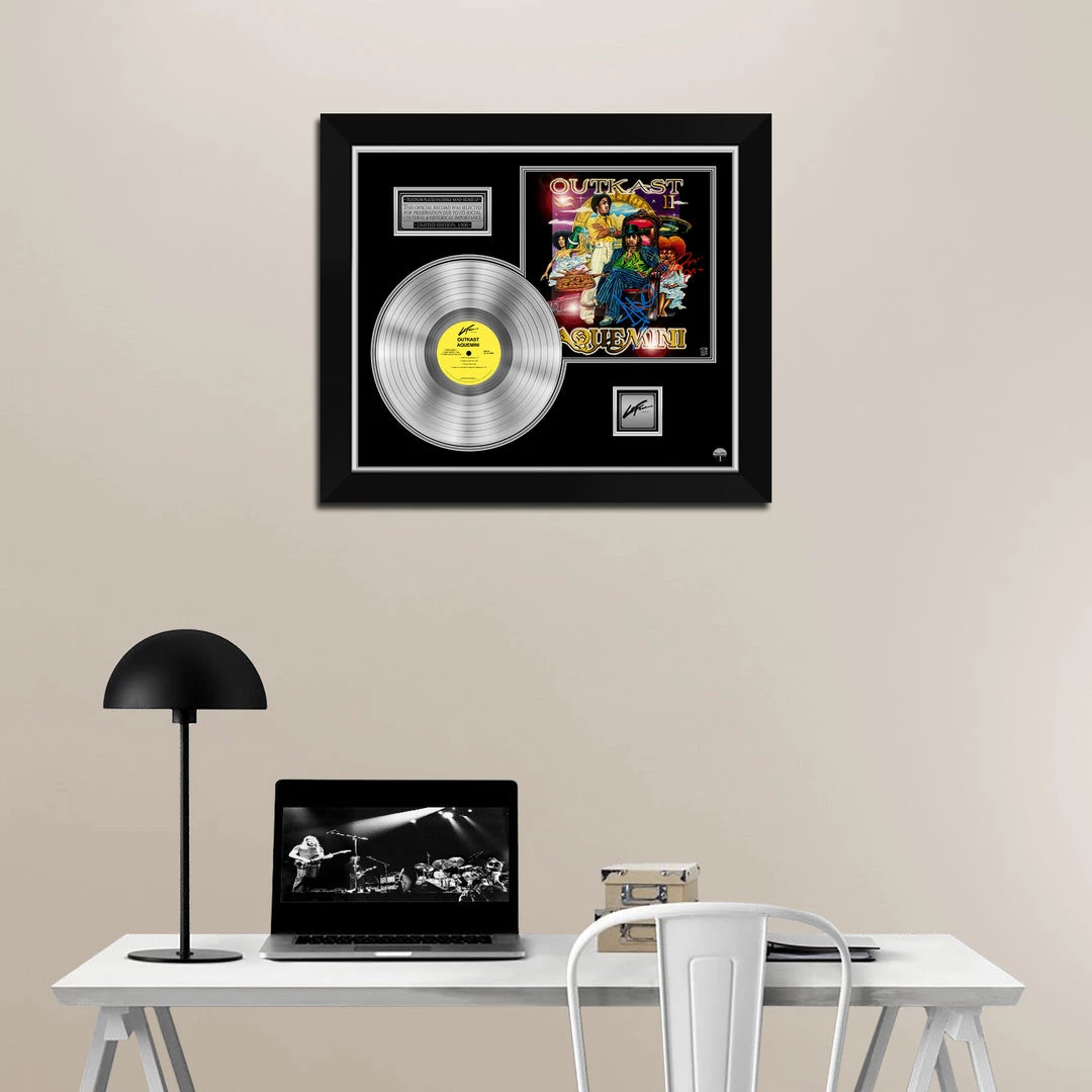 Pay homage to Outkast , with this gallery-framed, authentic LaFace Records fully licensed facsimile of the official Hand-Signed Platinum Plated LP Record and LP Cover Aquemini Originally signed by Andre 3000 & Big Boi, of which is strictly limited to 100 units Worldwide and has been approved and numbered accordingly.