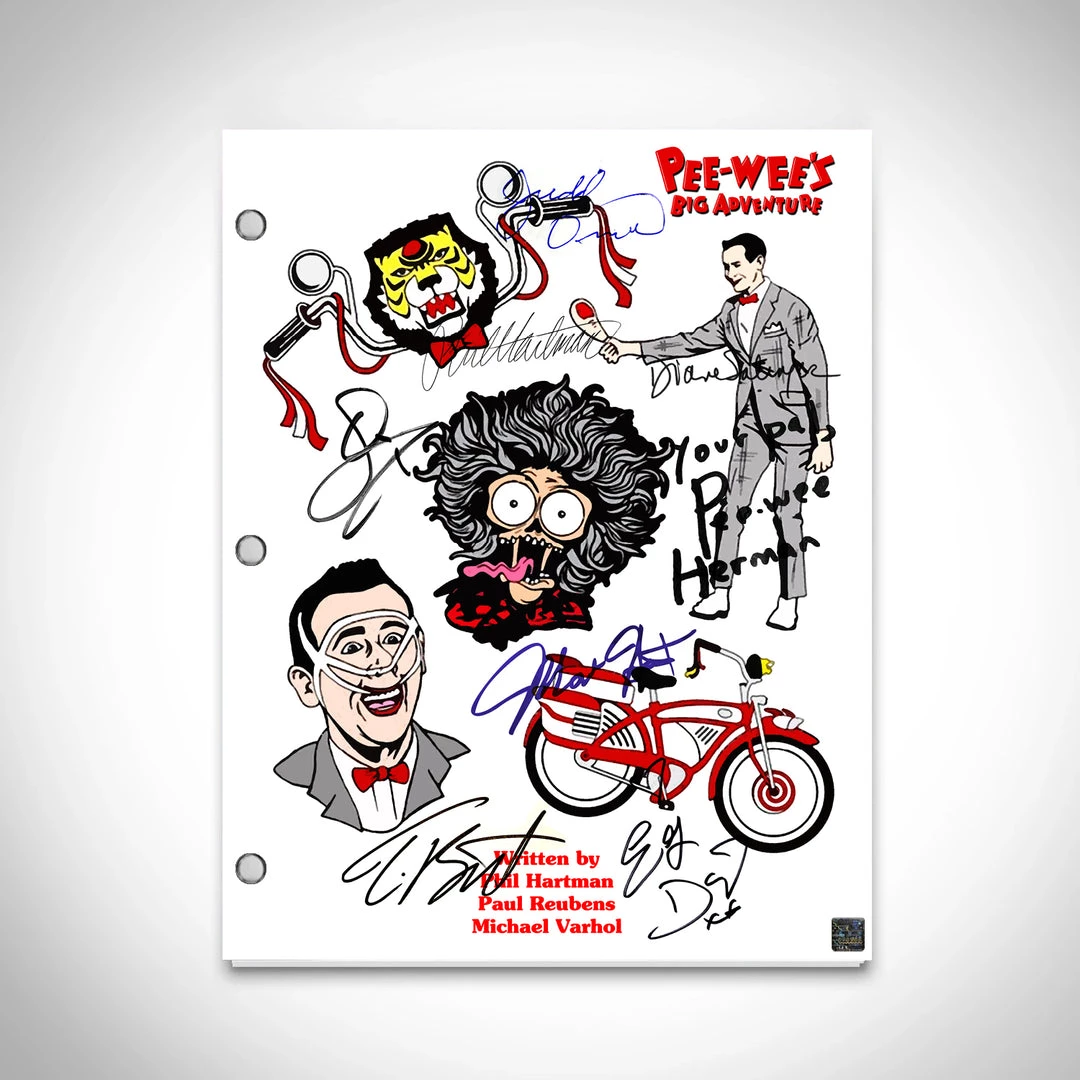 Pay homage to Pee-Wee’s Big Adventure , with this Warners Bros fully licensed facsimile of the official signed movie Transcript , originally signed by actors Tim Burton, Phil Hartman, Paul Reubens, E.G.Daily, Mark Holton, Diane Salinger, Judd Omen, Danny Elfman & Dee Snider , of which is strictly limited to 100 units Worldwide and has been approved and numbered accordingly.