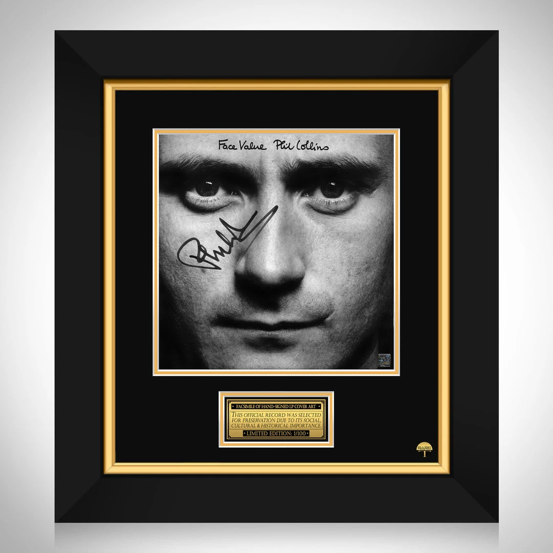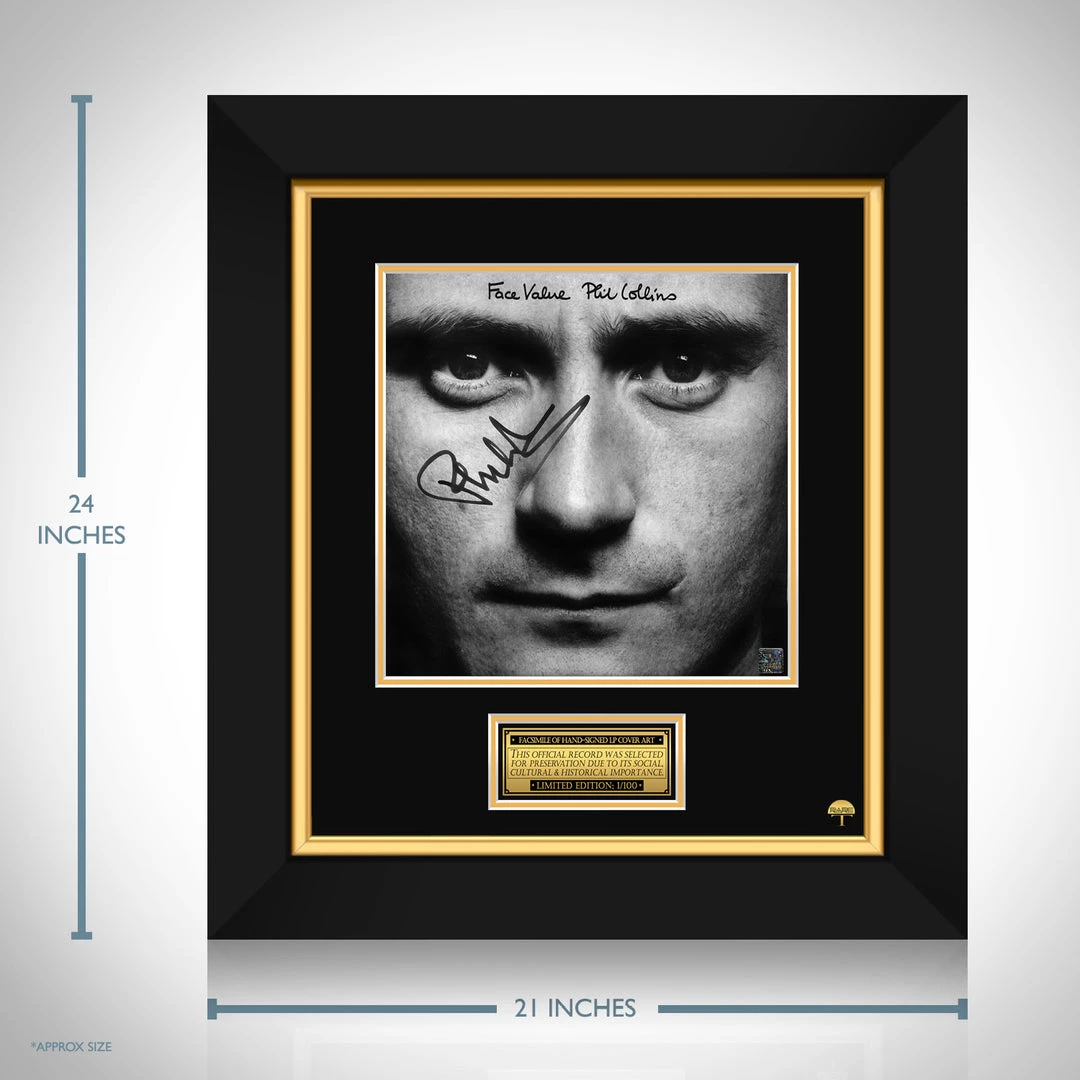 Pay homage to one of the most iconic English drummer, singer, songwriter, and record producer of all time, Phil Collins , with this gallery-framed, officially licensed, limited edition facsimile of the Hand-Signed Face Value LP Cover originally signed by Phil Collins , of which is strictly limited to 100 units Worldwide, and has been approved and numbered accordingly.