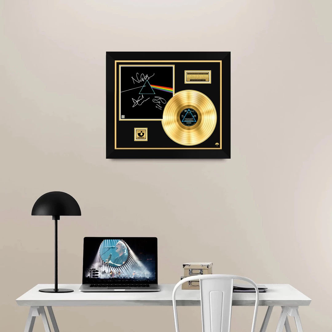 – Collectible Pink Floyd facsimile of hand-signed 24K Gold Plated LP + Photo Custom Frame