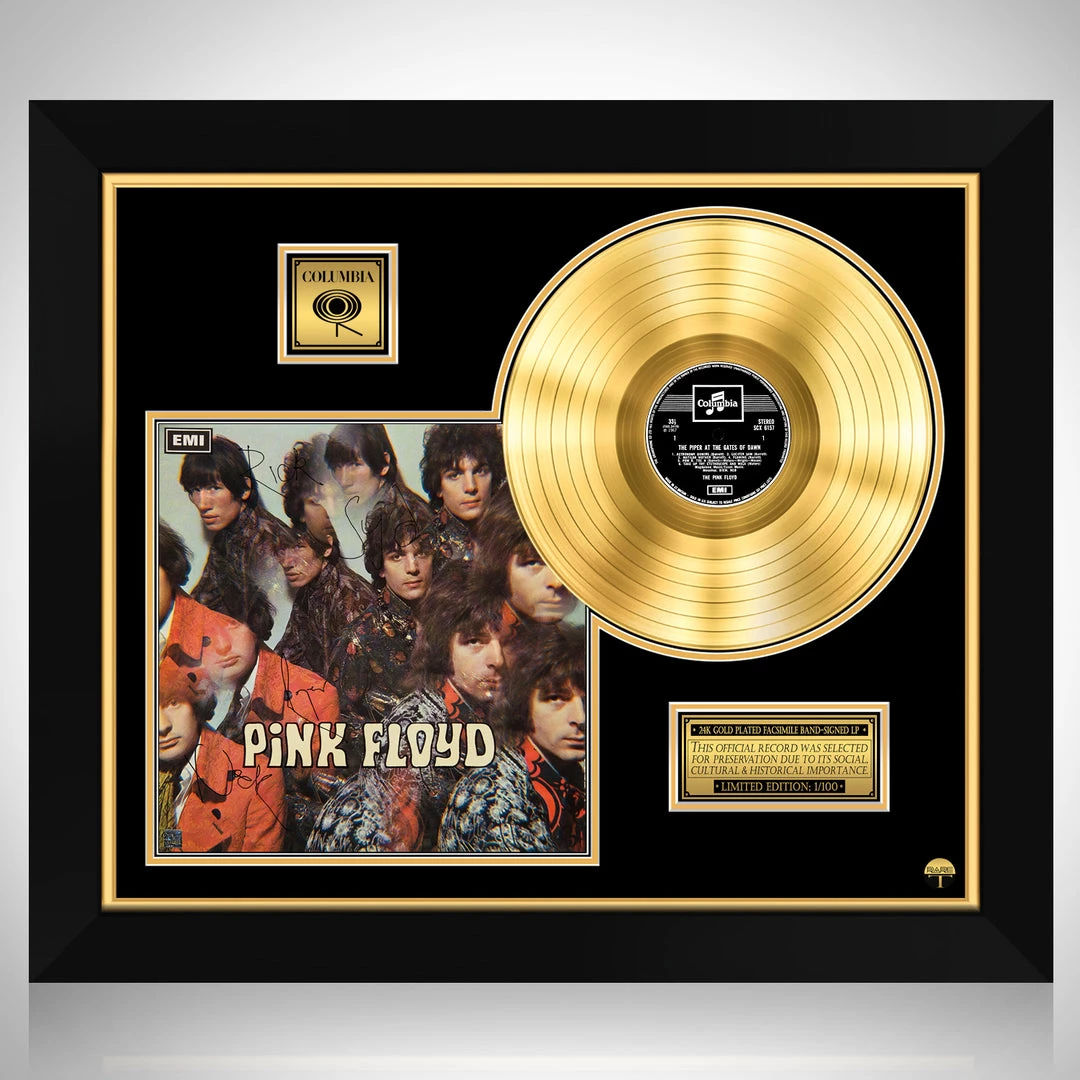 Pay homage to one of the most iconic English rock band of all time Pink Floyd , with this gallery-framed, authentic Columbia Records fully licensed facsimile of the official Hand-Signed 24K Gold LP Record and LP Cover Piper at the gates of dawn Originally signed by Syd Barrett, Roger Waters, Rick Wright & Nick Mason , of which is strictly limited to 100 units Worldwide and has been approved and numbered accordingly.