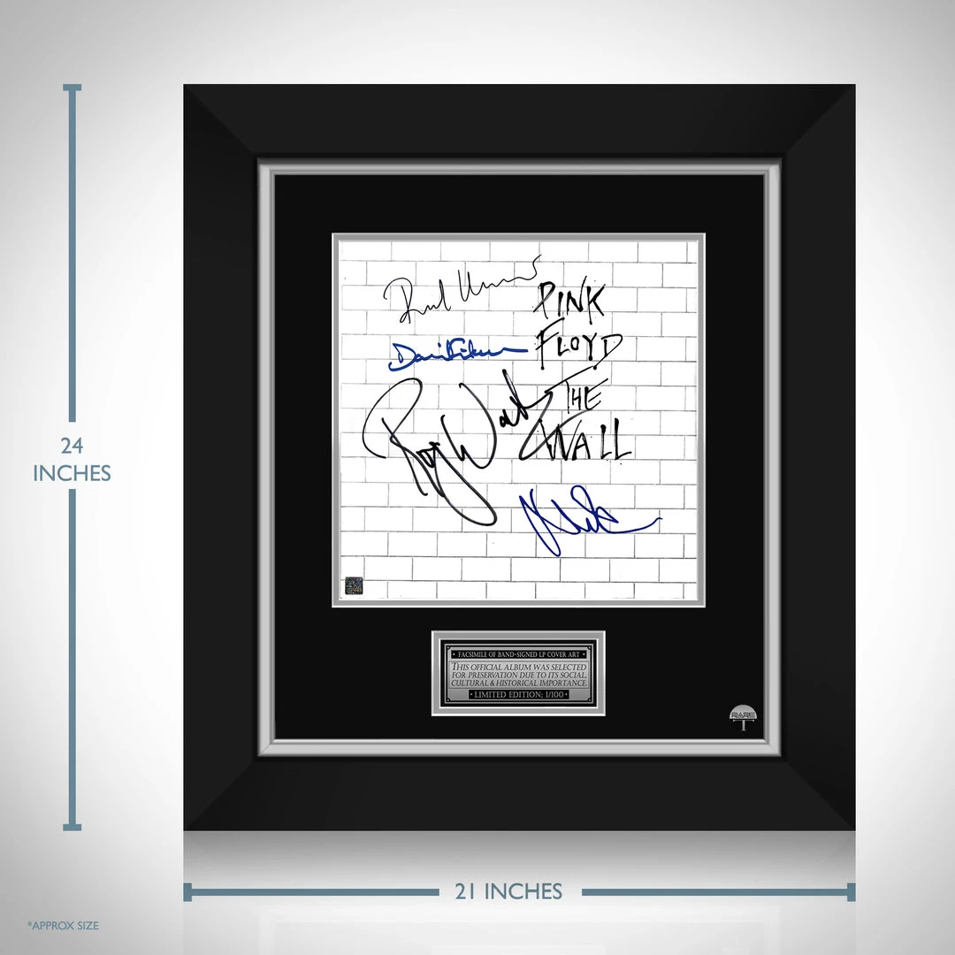 Pay homage to one of the most iconic rock band of all time, Pink Floyd , with this gallery-framed, officially licensed, limited edition facsimile of the Hand-Signed The Wall LP Cover originally signed by Roger Waters, David Gilmour, Nick Mason & Richard Wright , of which is strictly limited to 100 units Worldwide, and has been approved and numbered accordingly.