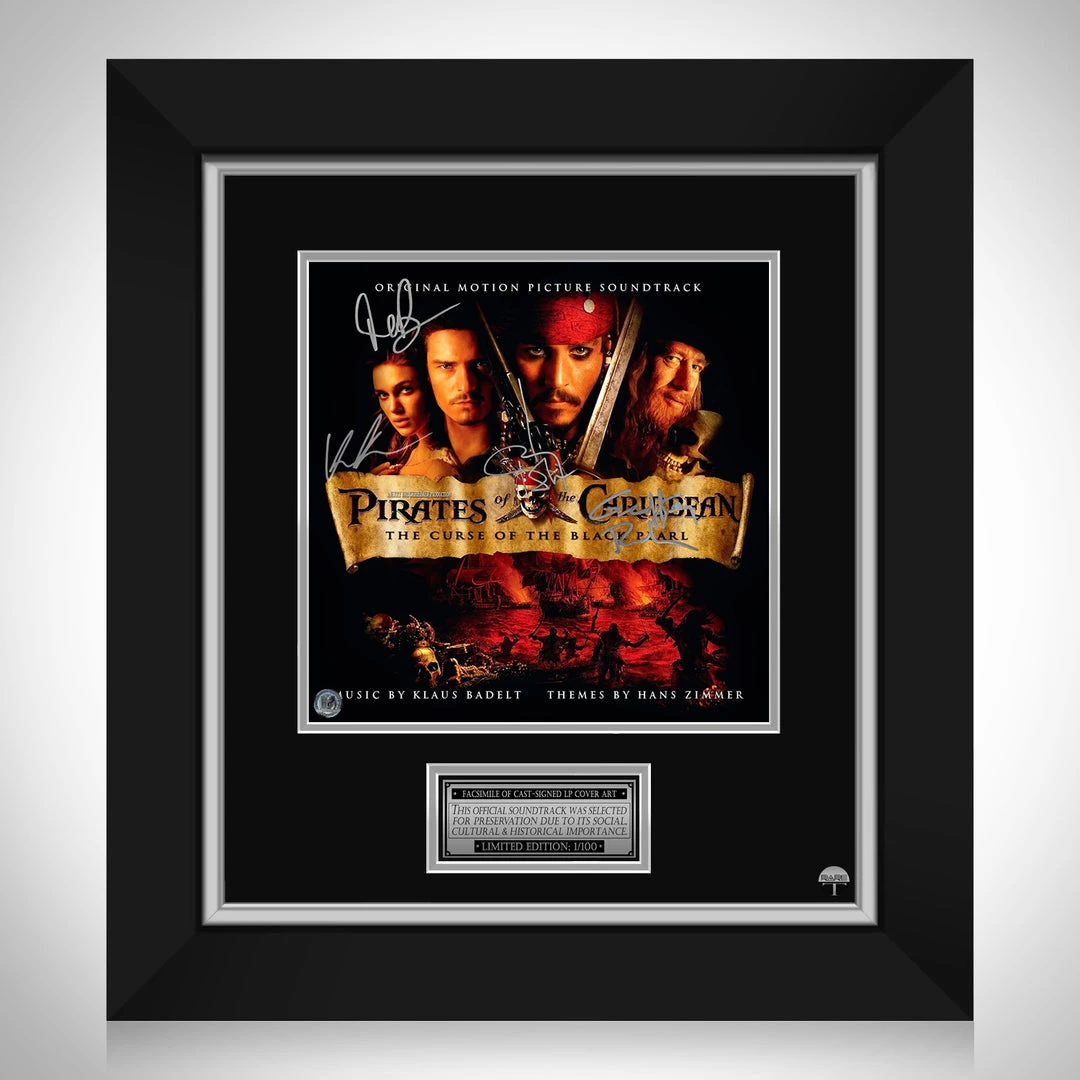 Pay homage to one of the most iconic movie of all time, Pirates of The Caribbean The cursed of the Black Pearl , with this gallery-framed, officially licensed, limited edition facsimile of the Hand-Signed Original Motion Picture Soundtrack LP Cover originally signed by Johnny Depp, Geoffrey Rush, Orlando Bloom, Keira Knightley & Hans Zimmer , of which is strictly limited to 100 units Worldwide, and has been approved and numbered accordingly.