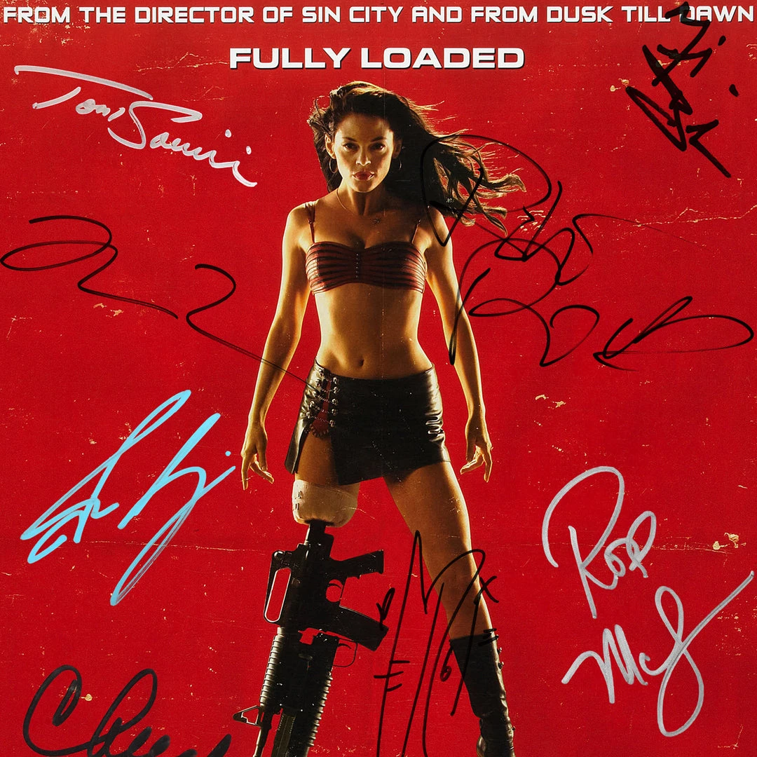 — Originally signed by Rose McGowan, Josh Brolin, Michael Biehn, Bruce Willis, Fergie, Tom Savini, Quentin Tarantino, Danny Trejo, Cheech Marin & Robert Rodriguez
