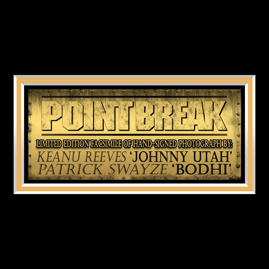 Pay homage to Point Break, with this gallery-framed, officially licensed, limited edition facsimile of the Hand-Signed photo, originally signed by Keanu Reeves & Patrick Swayze, of which is strictly limited to 100 units Worldwide, and has been approved and numbered accordingly.