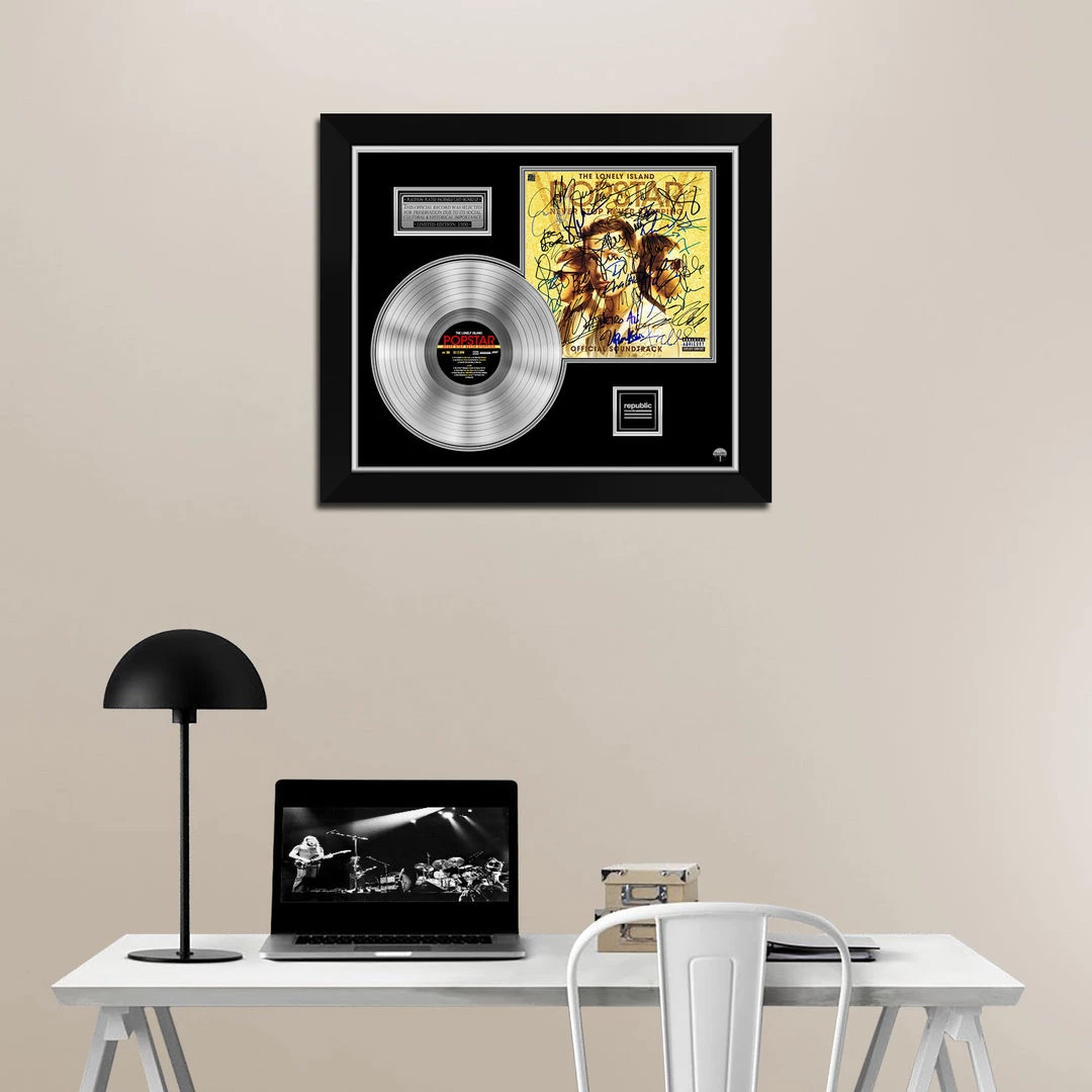 Pay homage to one of the most iconic American mockumentary musical comedy film of all time Popstar , with this gallery-framed, authentic Republic Records fully licensed facsimile of the official Hand-Signed Platinum Plated LP Record and LP Cover Never Stop Never Stopping Originally signed by Andy Samberg, Sarah Silverman, Tim Meadows, Maya Rudolph, Joan Cusack, Carrie Underwood, NAS, Usher, 50 Cent, Ringo Starr, Simon Cowell, Adam Lavigne, Mariah Carey, Pink, DJ Khaled, Kevin Nealon, Will Arnett, Chelsea Peretti, Eric André, Bill Hader, RZA, Pharrell Williams, Seal, Jimmy Fallon, Martin Sheen, Snoop Dogg, Weird ‘AL’ Yankovic, Michael Bolton, Katy Perry, Emma Stone, Justin Timberlake & Judd Apatow , of which is strictly limited to 100 units Worldwide and has been approved and numbered accordingly.