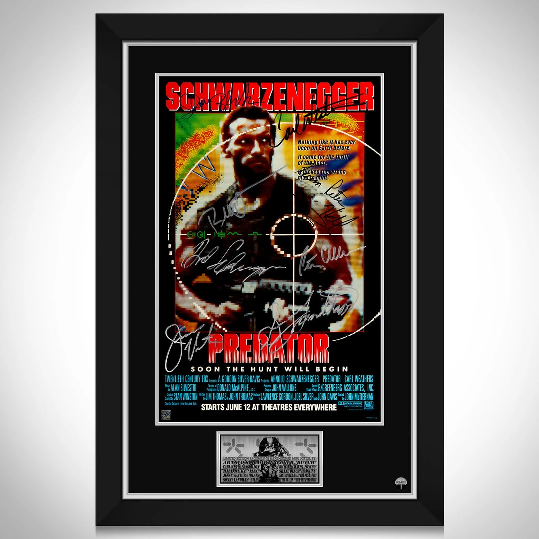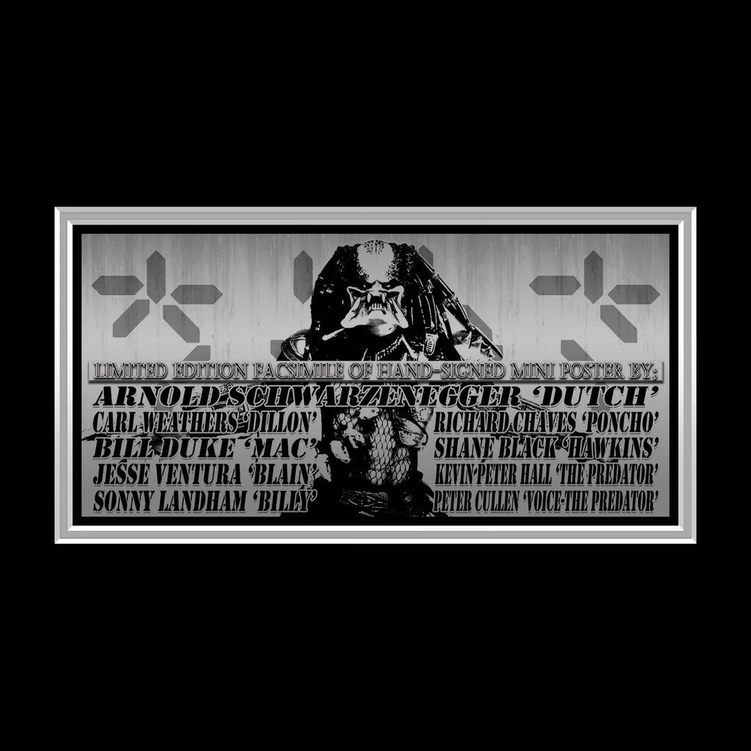 Pay homage to one of the most iconic movies of all time, Predator, with this gallery-framed, officially licensed, limited edition facsimile of the official Hand-Signed mini poster, originally signed by legendary actors Arnold Schwarzenegger, Carl Weathers, Bill Duke, Jesse Ventura, Sonny Landham, Richard Chaves, Shane Black, Kevin Peter Hall & Peter Cullen., of which is strictly limited to 100 units Worldwide, and has been approved and numbered accordingly.