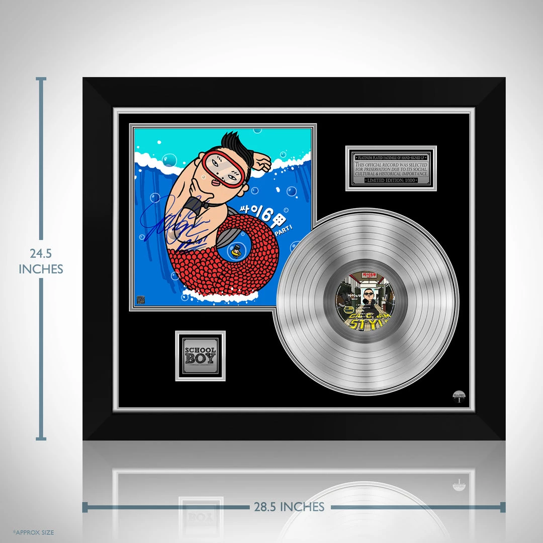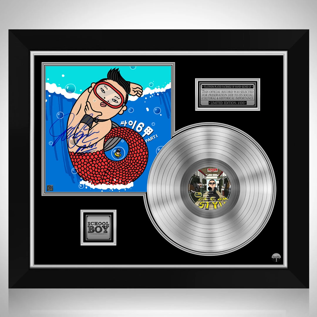 Pay homage to Psy, with this gallery-framed, authentic YG Entertainment fully licensed facsimile of the official Hand-Signed Platinum Plated LP Record and LP Coverย 6ย Originally signed by Park Jae-sang, of which is strictly limited to 100 units Worldwide and has been approved and numbered accordingly.