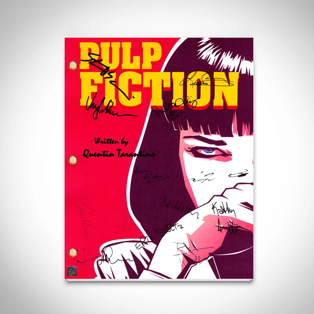 Pay homage to Pulp Fiction , with this Miramax Films  fully licensed facsimile of the official signed movie script, originally signed by actors Uma Thurman, John Travolta, Samuel L. Jackson, Bruce Willis, Quentin Tarantino & Ving Rhames , of which is strictly limited to 100 units Worldwide and has been approved and numbered accordingly.